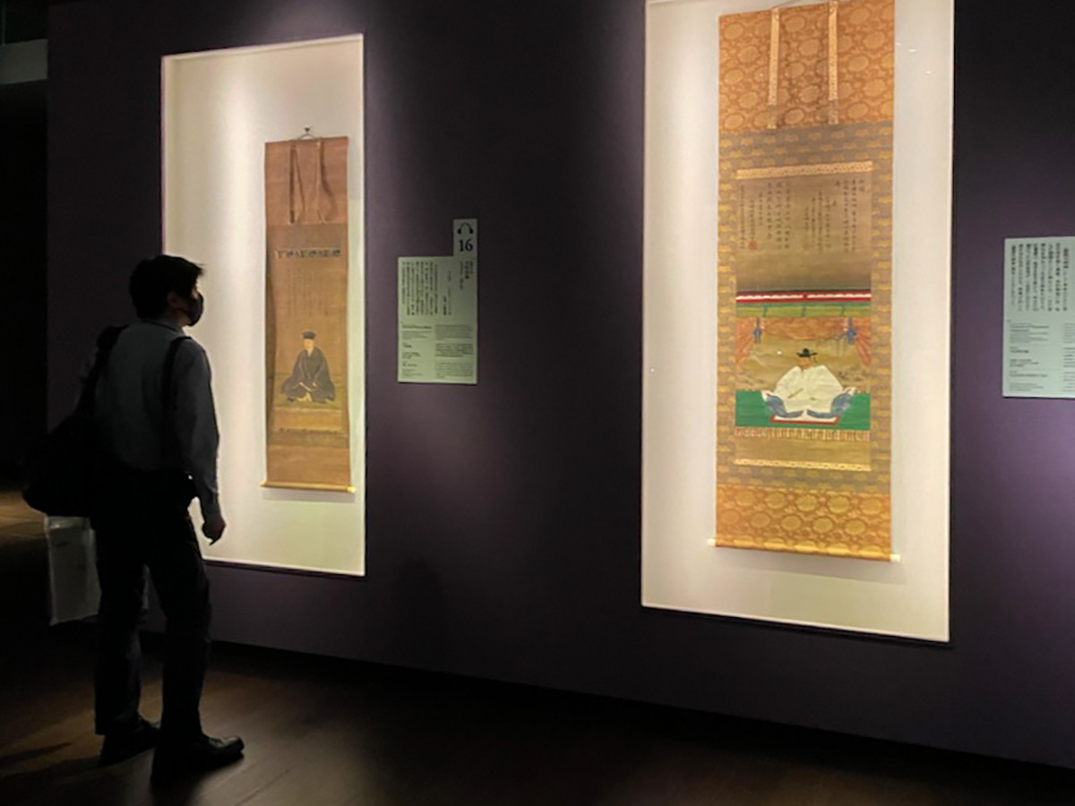 利休の肖像画は、長谷川等伯によって、利休没後4年を経て描かれたものです。利休の肖像画はほかに、利休存命中に描かれた唯一の肖像画も展示されています。