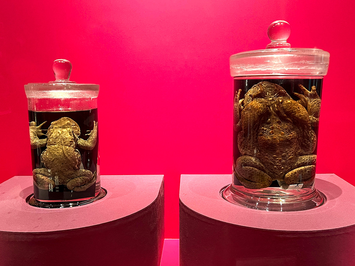 展覧会の最後は、終章「毒とはうまくつきあおう」。人間の活動が招いた気候変動や物流によって、新たな環境に毒生物の分布が広がっているなど、毒は私たち自身が拡散しているともいえます。