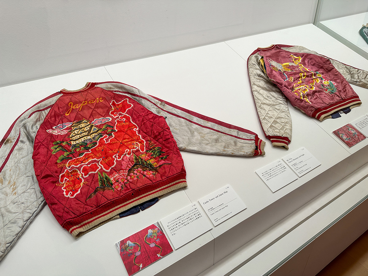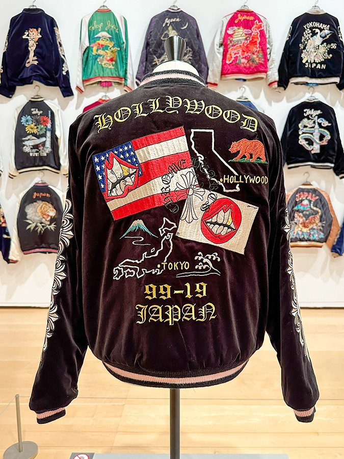 スカジャンは現在でも世界中のファッションシーンから注目を集めてあり、ここではChrome HeartsやDIORなどによる、近年のスカジャンが展示されています。
