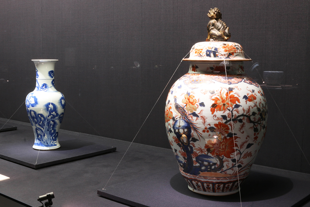 (左から)《青花木蓮瓶》 / 《五彩花鳥文壺 景徳窯》