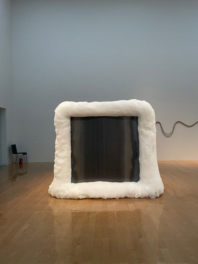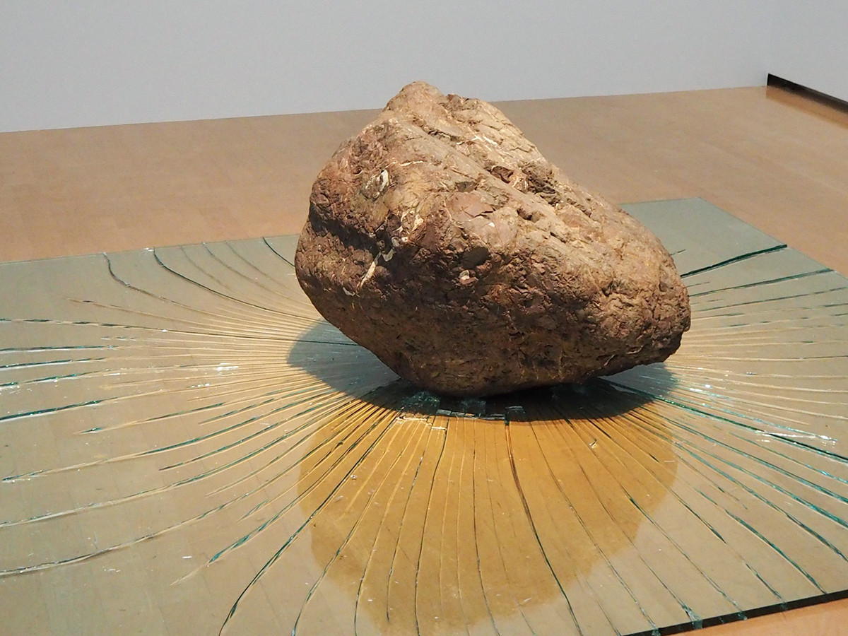 そして、李氏の作品といえば割れたガラスと石の組み合わせを思い浮かべる人も多いのではないでしょうか。この組み合わせのインパクトは強烈ですが、時代によって変化してきたことを知りました。この作品が生まれた1970年代前後は世界的にも大きな変化が起こり、従来の制度が壊れて新しいものが生まれる勢いがありました。当初の「壊す」という意味に解釈されるような「割れ」は、時代が移り「きれいに」「poeticに」割るように変化したといいます。作品の興味深いところです。