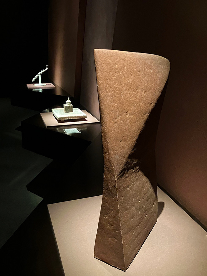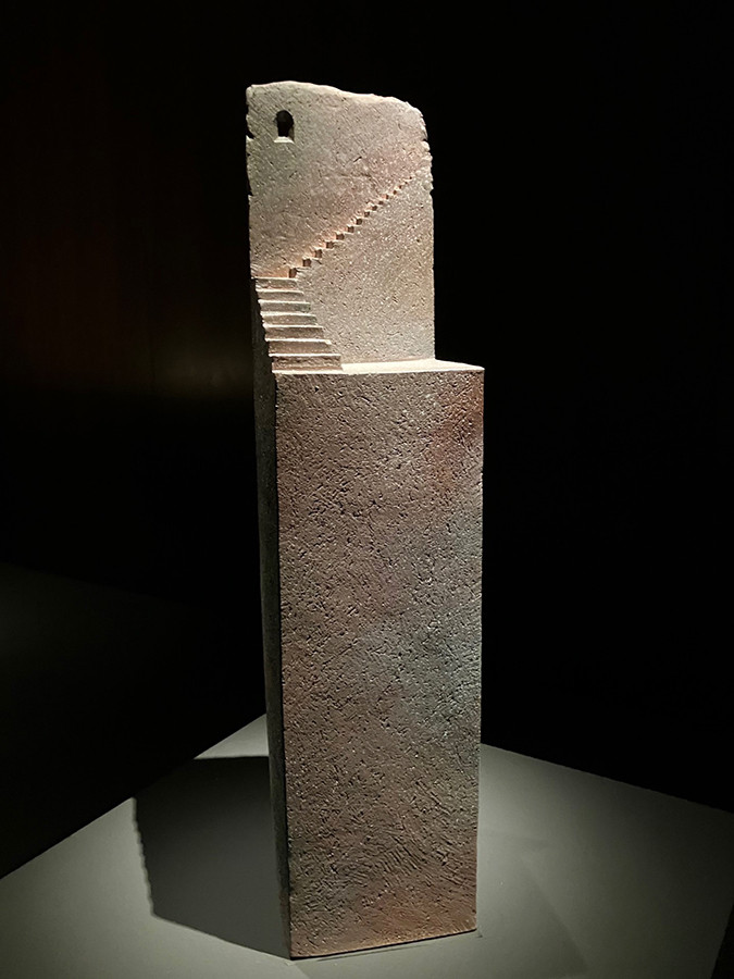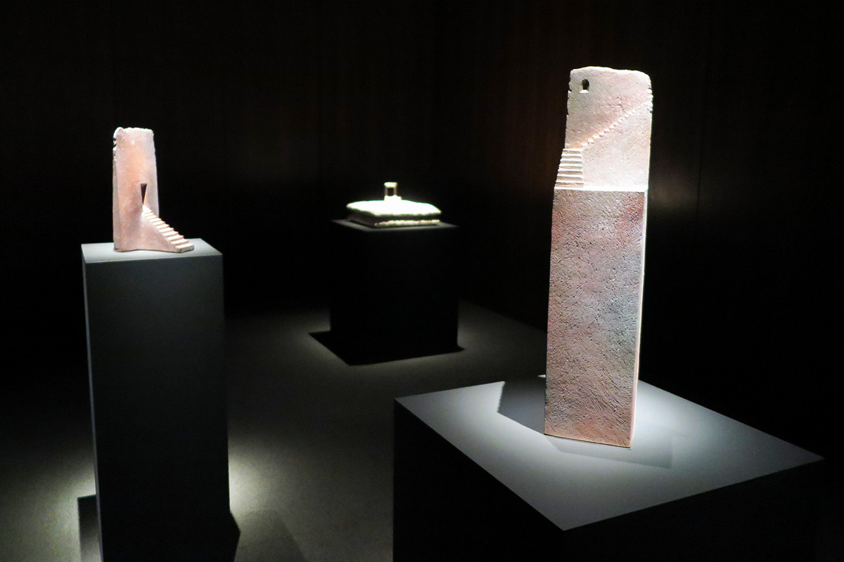 今回の展覧会の最後を飾るのは川上力三の階段と窓をモチーフにしたユニークな作品だ。京焼の陶工の元での修行を経て、1958年に作陶集団MAGMAを結成した川上が、50歳を過ぎてから取り組む「段シリーズ」。
