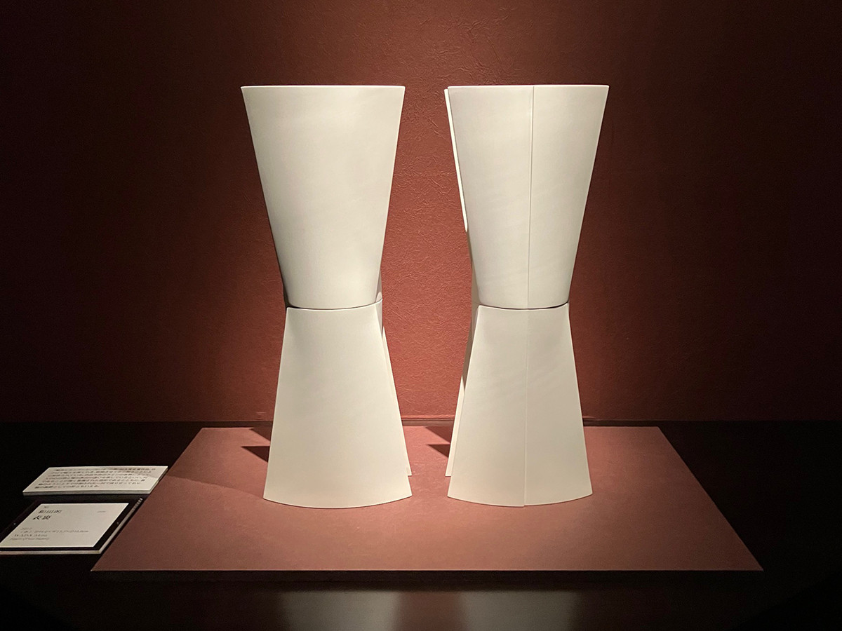 智美術館が隔年で開催する菊池ビエンナーレの大賞受賞作品 和田的の「表裏」はろくろでひいた磁器を乾燥させたあと削って形を作った実に美しい作品だ。実はこれも真ん中で蓋物のように上下で分割されるという。器の要素も持つ独特なフォルムに魅了される。