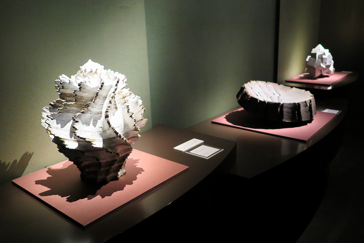 紹介されているのは物故者も含めていずれも戦後の陶芸界を代表する有名作家ばかり。土を用いた自由な造形作品の数々はまさに「思考するかたち」だ。