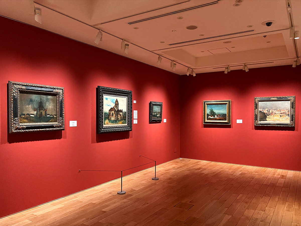 パリから40キロ離れた小さな街・ヴィリエ=シュル=モランへ写生旅行した際には、素朴な田舎街の魅力に制作意欲をかき立てられ、20日ほどの滞在で30数点の作品を生み出します。パリで描かれていたポスターの文字や華やかな色彩との対比が感じられる作品です。