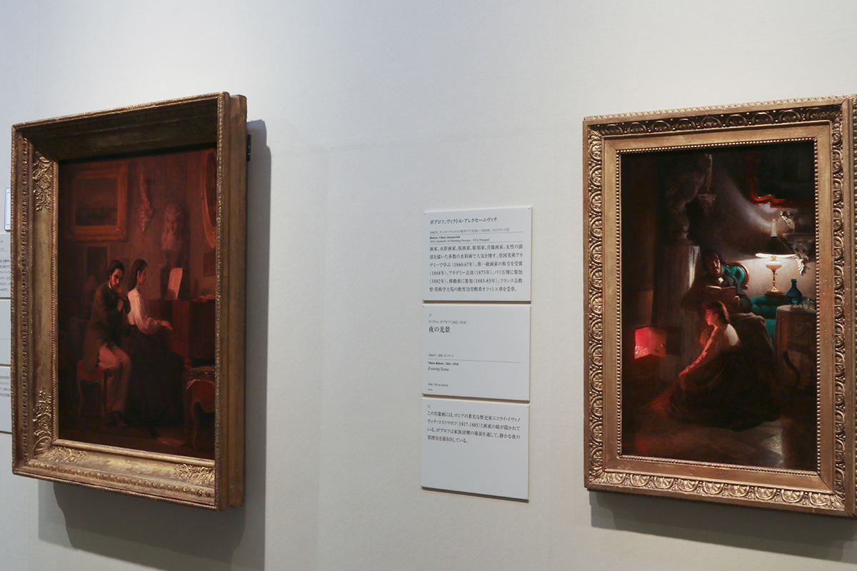 (左から)ニコライ・コシェレフ《音楽のレッスン》 / ヴィクトル・ボブロフ《夜の光景》