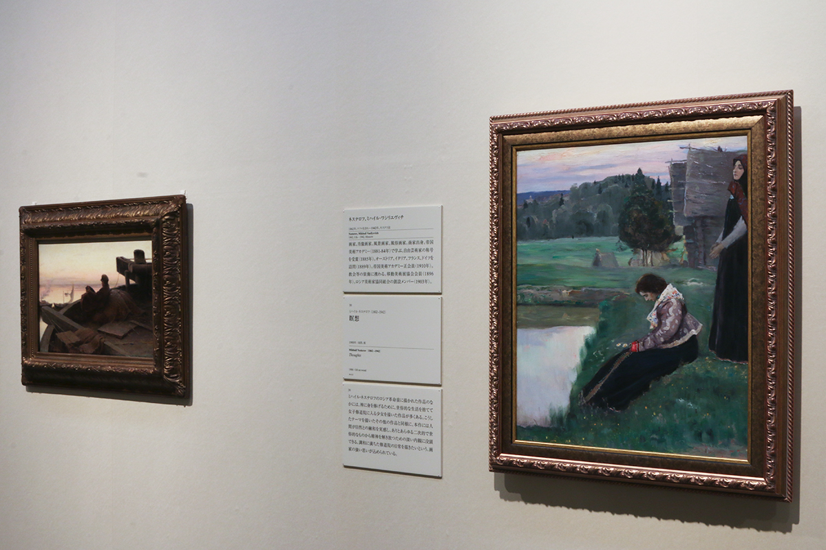 (左から)アブラム・アルヒーボフ《ヴォルガ川にて》1889年 / ミハエル・ネステロフ《瞑想》1900年