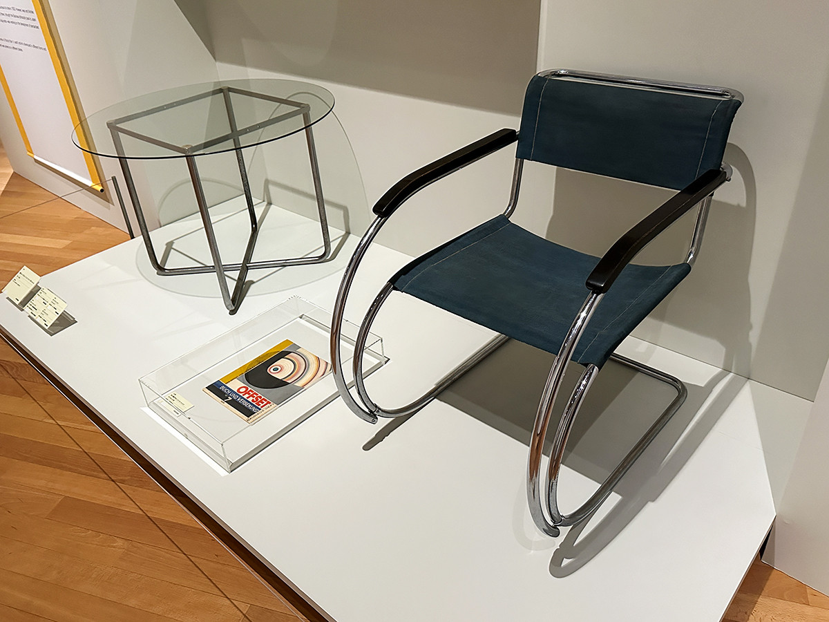 chapter 4「1926-1938」 (左奥から)ルートヴィヒ・ミース・ファン・デル・ローエ《テーブル》1933年 豊田市美術館 / ルートヴィヒ・ミース・ファン・デル・ローエ《アームチェア MR534》1927/32年 豊田市美術館