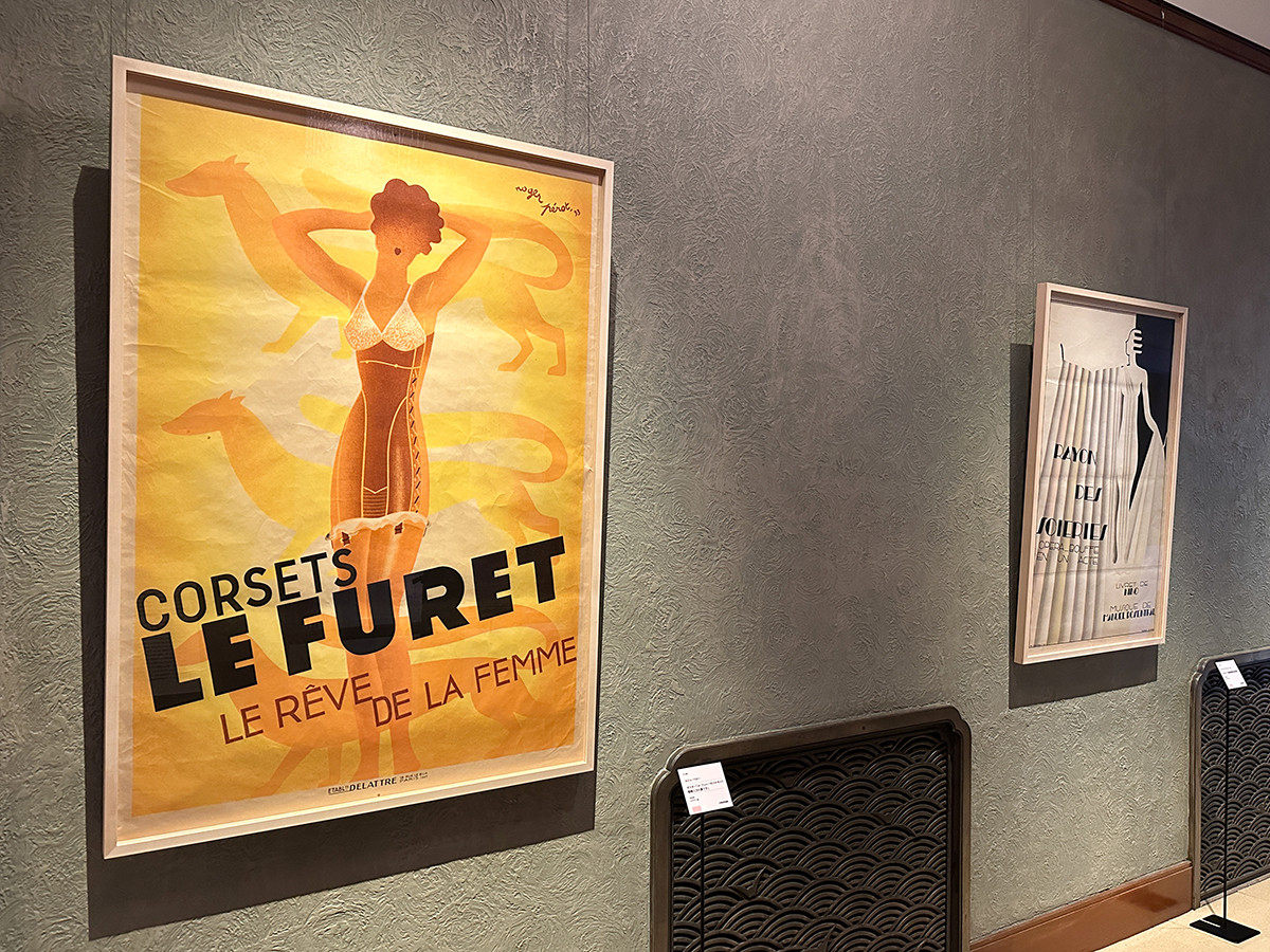 chapter 3「1919-1925」 (左から)ロジェ・ペロー《ポスター「ル・フュレーのコルセット 御婦人方の夢です」》1933年 宇都宮美術館 / モーリス・デュフレール《ポスター「1幕物喜歌劇:絹の輝き」》1923年 宇都宮美術館[展示期間:ともに 2022年12月17日~2023年1月22日]