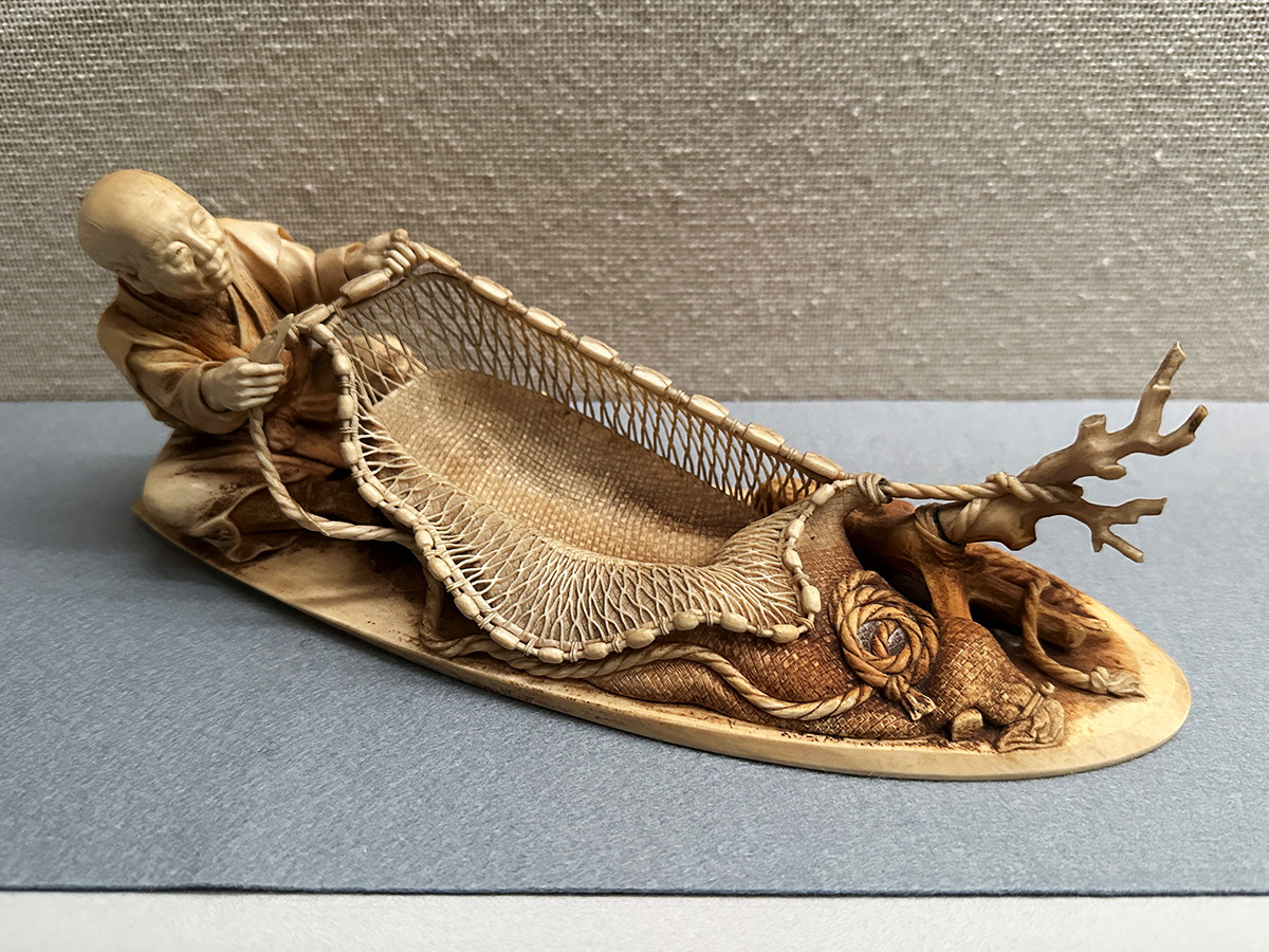 銘「龍民」《牙彫「網と老人」》明治~大正時代・20世紀