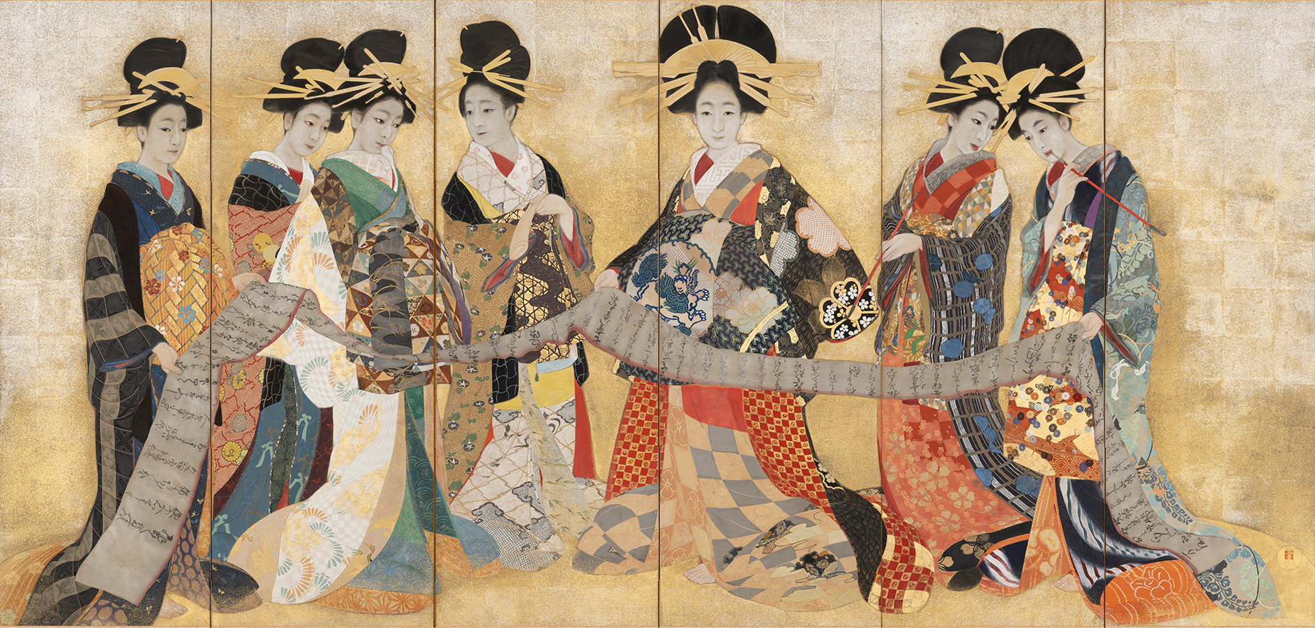 《虹のかけ橋(七妍)》、1915-76(大正4-昭和51)年頃、絹本着色・六曲一隻、180.0×370.0cm、京都国立近代美術館