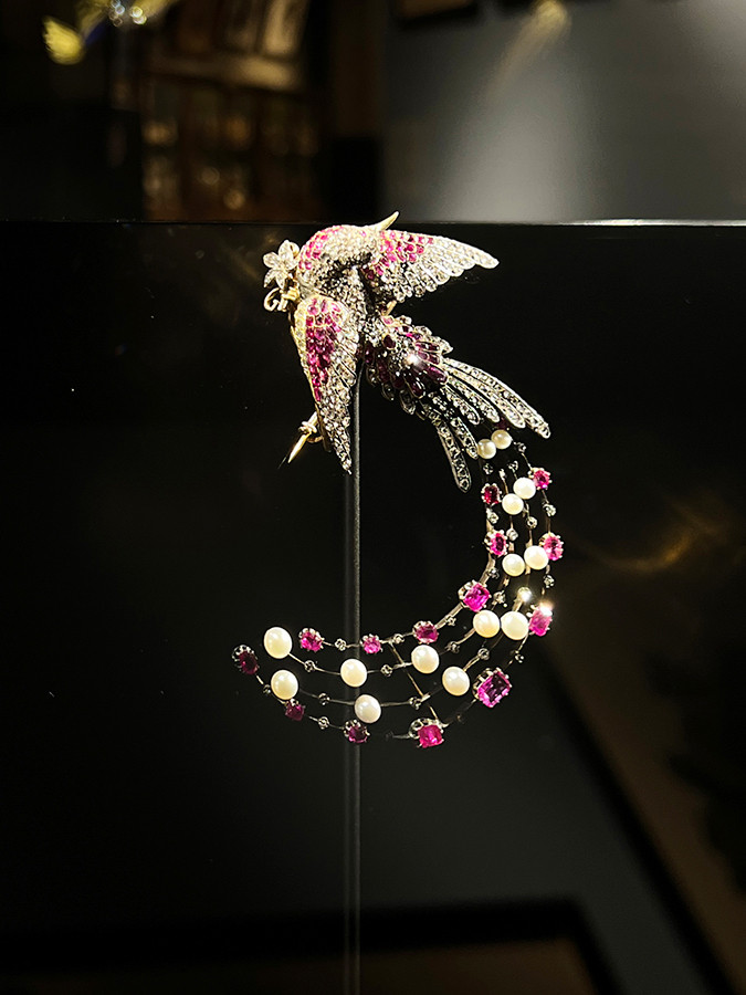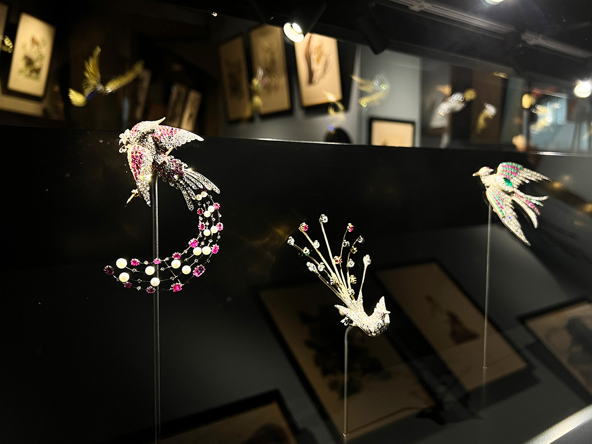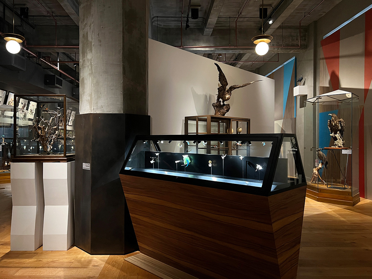 鳥をモチーフにした宝飾芸術を、鳥の剥製標本など研究資料とあわせて展示