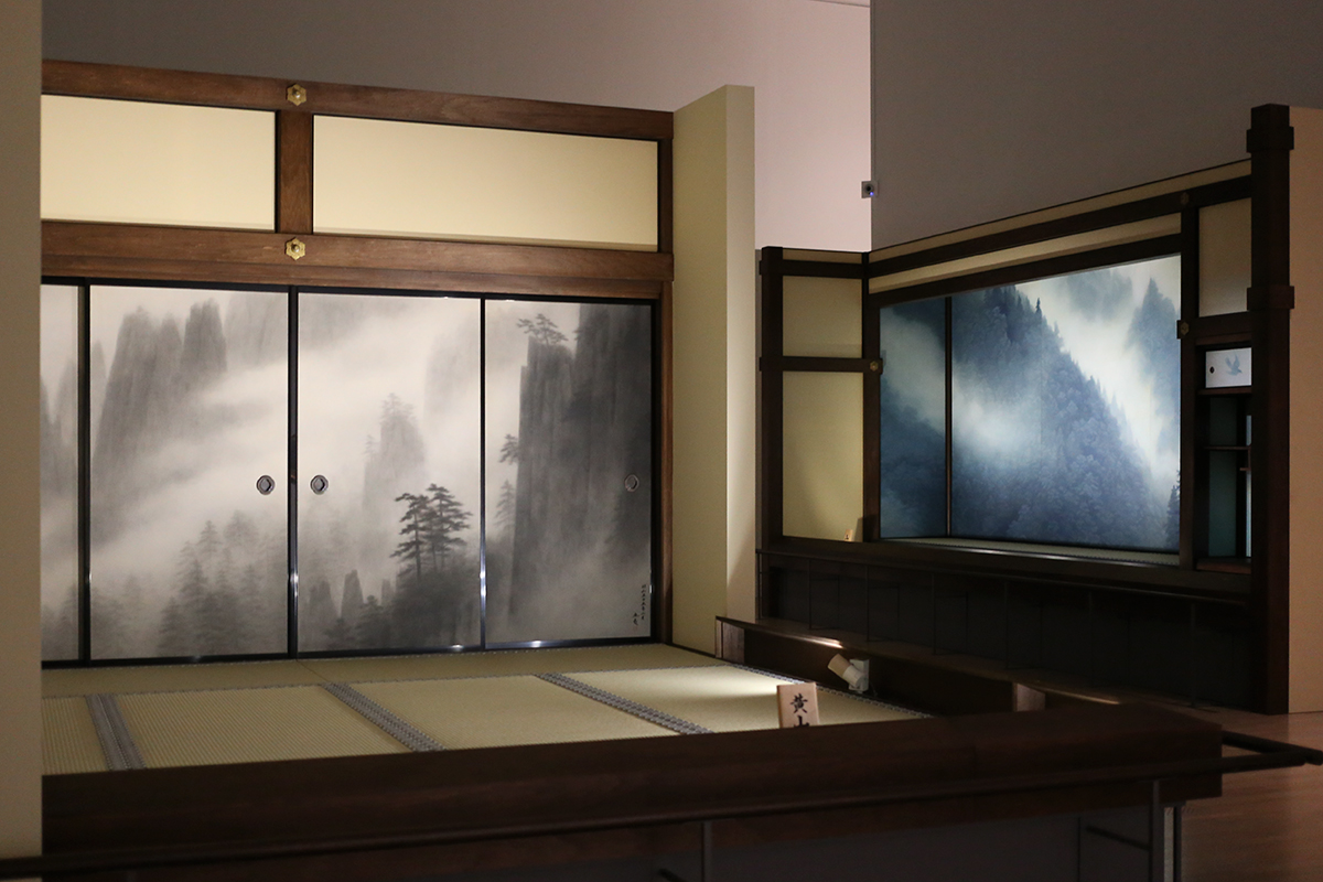 (左手前)《唐招提寺御影堂障壁画 黄山暁雲》1980年 / (右奥)《唐招提寺御影堂障壁画 山雲》1975年 ともに唐招提寺
