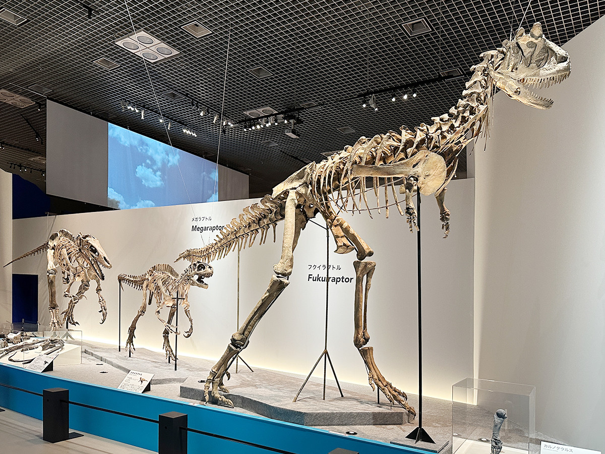 会場には、ゴルゴサウルスとズールを対峙させた展示もあります。スロープを下りながら全身復元骨格を鑑賞するという凝った構成で、迫力の戦いを堪能できます。