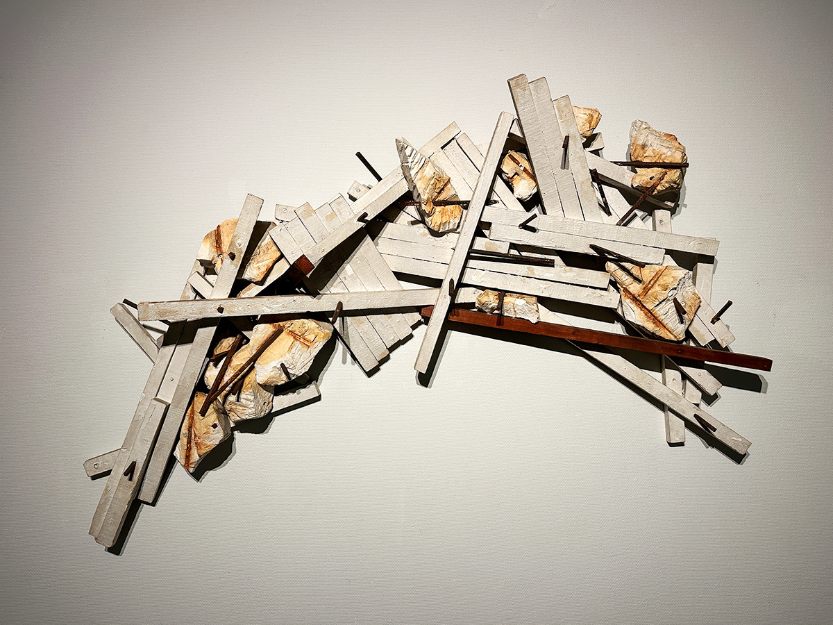 戸谷の代表作といえる「森」シリーズ。《森-Ⅰ》は、一番最初につくられた作品です。この作品では「《彫る》から」と同様に「視線」として鉄筋が差し込まれています。