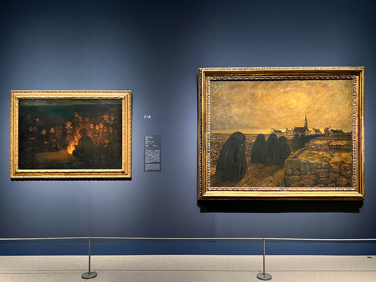 19世紀から20世紀にかけて注目を集めたのは、レアリスムの系譜の中でブルターニュの風俗や自然を描いた「バンド・ノワール(黒の一団)と呼ばれる画家たちです。 その一人、シャルル・コッテは荒涼とした海沿いの風景や厳しい自然に耐え忍ぶ住民の姿を重々しい色調で表現。深い感情的高揚をもたらす独自なレアリスムで宗教儀礼や喪の情景をとらえました。