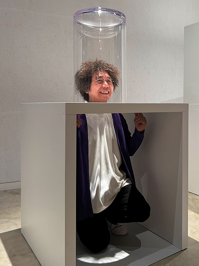 無機質なアルミニウムの壁面には、生と死をテーマとした『かないくん』と『ぼく』が展示されています。