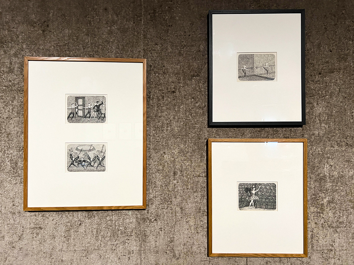 舞台美術や衣装にも興味を抱いていたゴーリーは、20代後半になるとニューヨーク・シティ・バレエの公演に通いつめるほど、振付師のジョージ・バランシンを敬愛します。バレエを主題とした作品も作り、バレエ雑誌の表紙やニューヨーク・シティ・バレエのロゴのほかピンやグッズのデザインも担当しました。