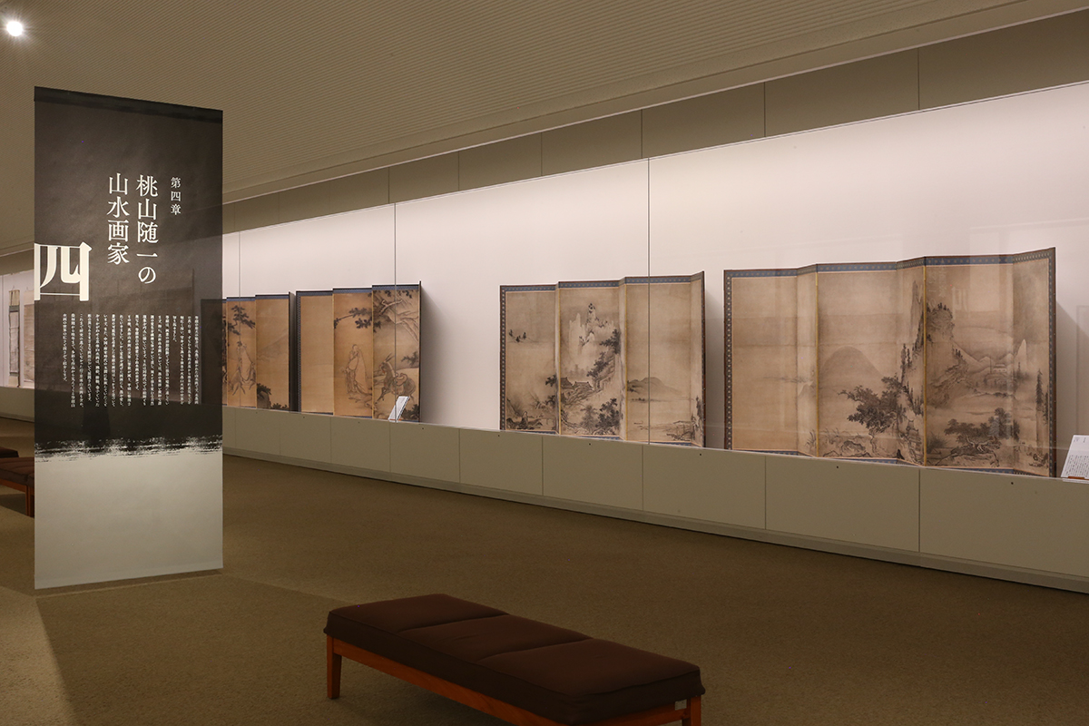 4章「桃山随一の山水画家」 (中央奥)雲谷等顔《蘇東坡・潘閬図屏風》 / (右)雲谷等顔《山水図屏風》ともにボストン美術館 Photograph © 2018 Museum of Fine Arts, Boston