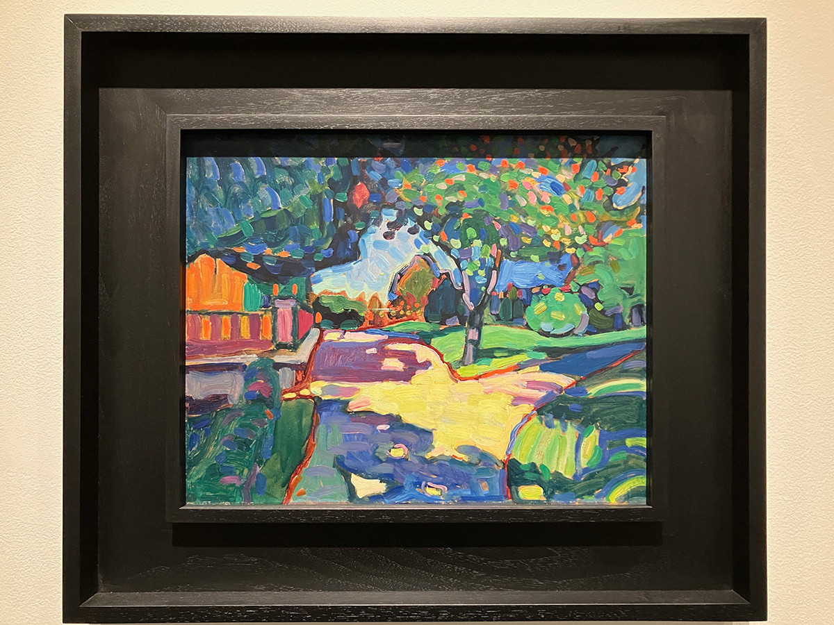 ヨーロッパを巡ったあとミュンヘンの南のムルナウと呼ばれる村で多くの作品を残したカンディンスキー。村の自然や町を様々な手法で描いているが、比較的初期の作品の一つ1908年の「3本の菩提樹」はまだ対象となる村の道や木々が具象的に描かれ、村のたたずまいがわかる作品だ。しかしその色遣いはどこかその後のカンディンスキーの抽象絵画を彷彿とさせるものを感じさせる。