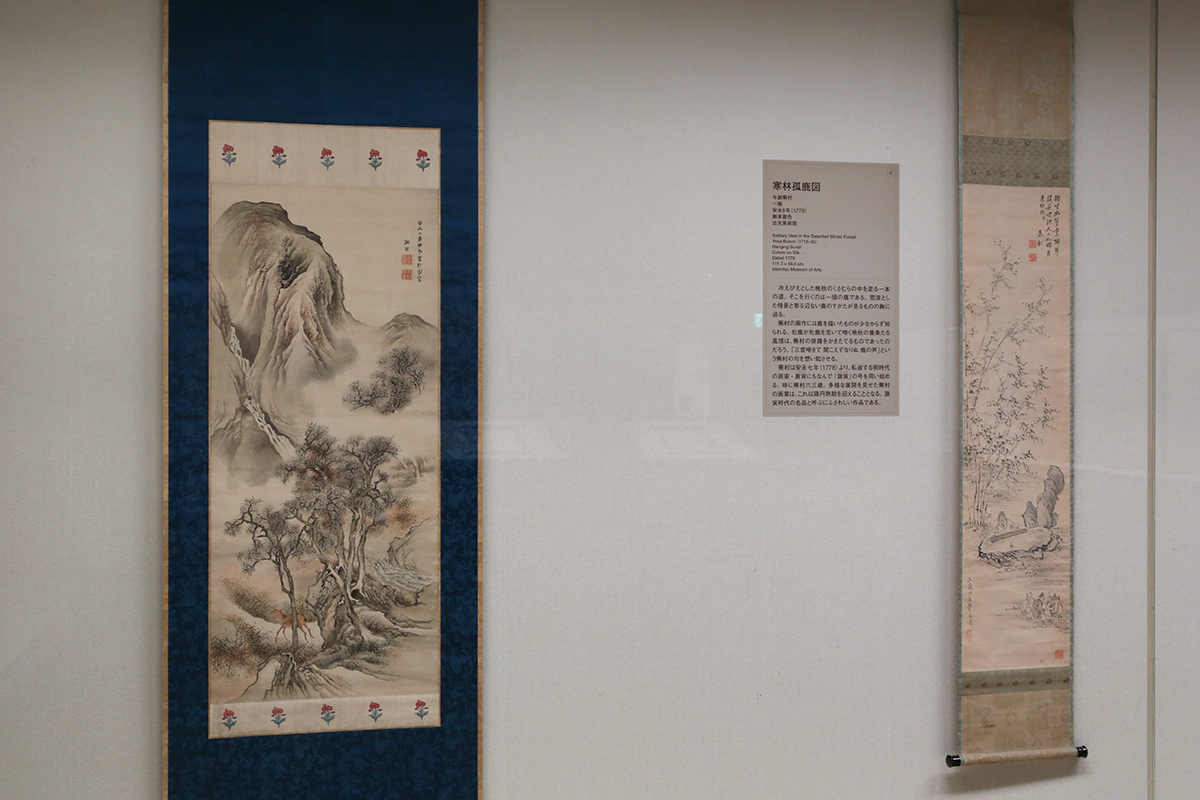 (左から)与謝蕪村《寒林孤鹿図》安永8年(1779) / 池大雅 画 高芙蓉 賛《竹裏館図》 ともに出光美術館蔵