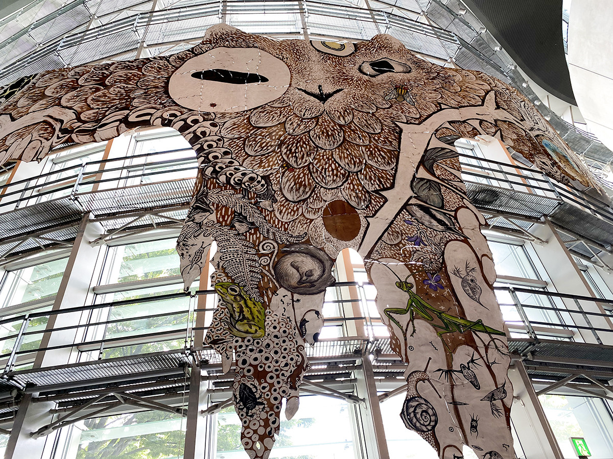 インクルーシブ・アート・プログラムを見学するため、新国立美術館に向かいます。こちらでは、10名くらいのグループに分かれて、鴻池朋子の《狼ベンチ》と《武蔵野皮トンビ》を鑑賞しました。1作品につき30分くらい、ゆっくり時間をかけて参加者で意見を出し合いながら、鑑賞します。