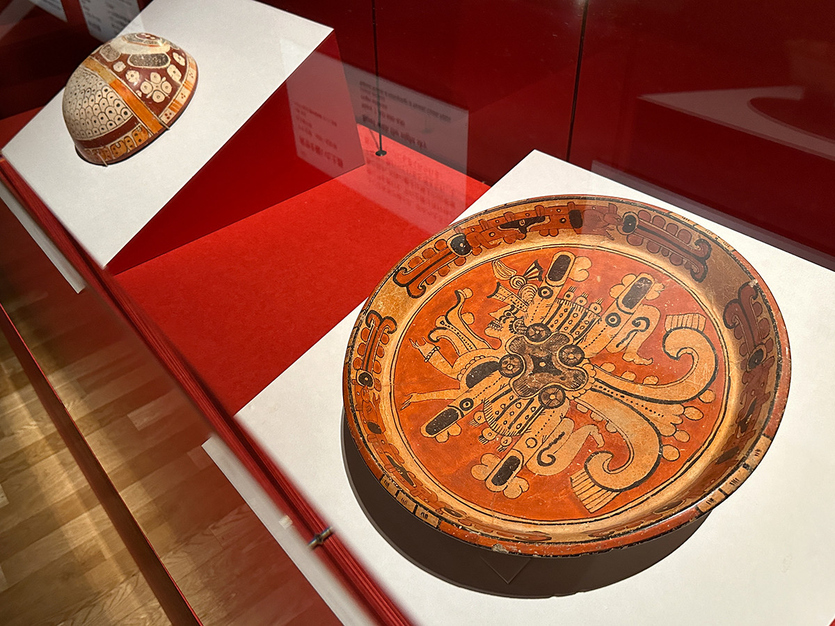 展覧会の目玉といえるのが《赤の女王(レイナ・ロハ)》です。パレンケ13号神殿の中央の墓室で、真っ赤な辰砂(水銀朱)に覆われて埋葬されており、展示室でもドラマチックに演出された空間で紹介されています。