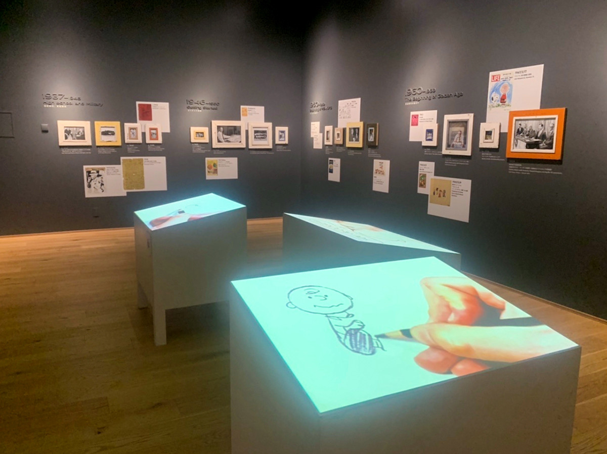 常設展示の「チャールズ・シュルツ・ギャラリー」には、キャラクターを生み出す貴重な映像も。