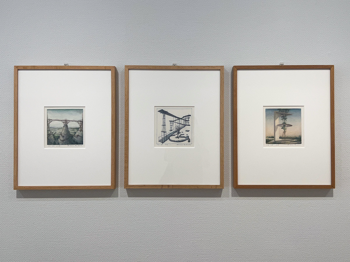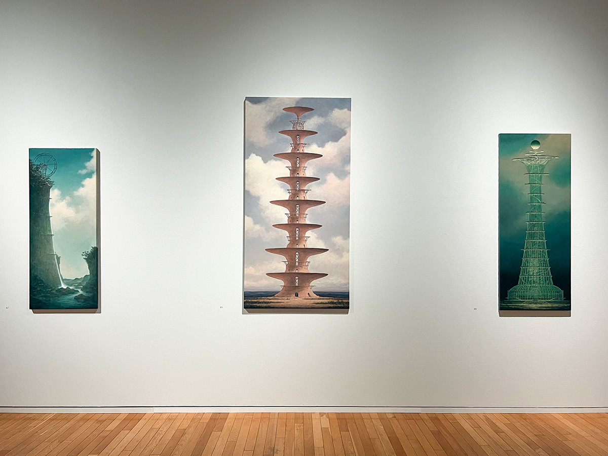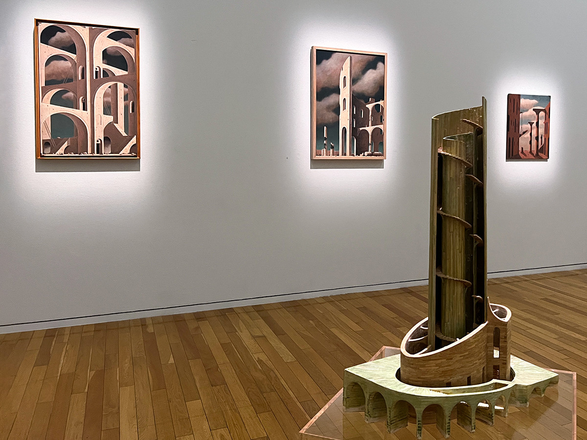 モデルとしている風景はないそうですが、キリコやエッシャー、バベルの塔を彷彿とさせる作品が会場には並んでいます。