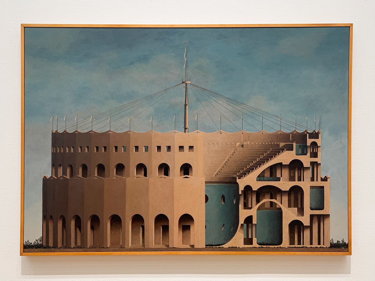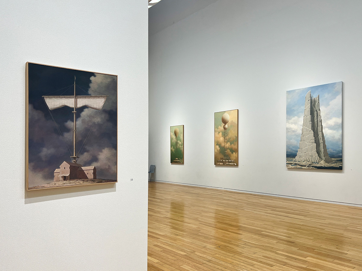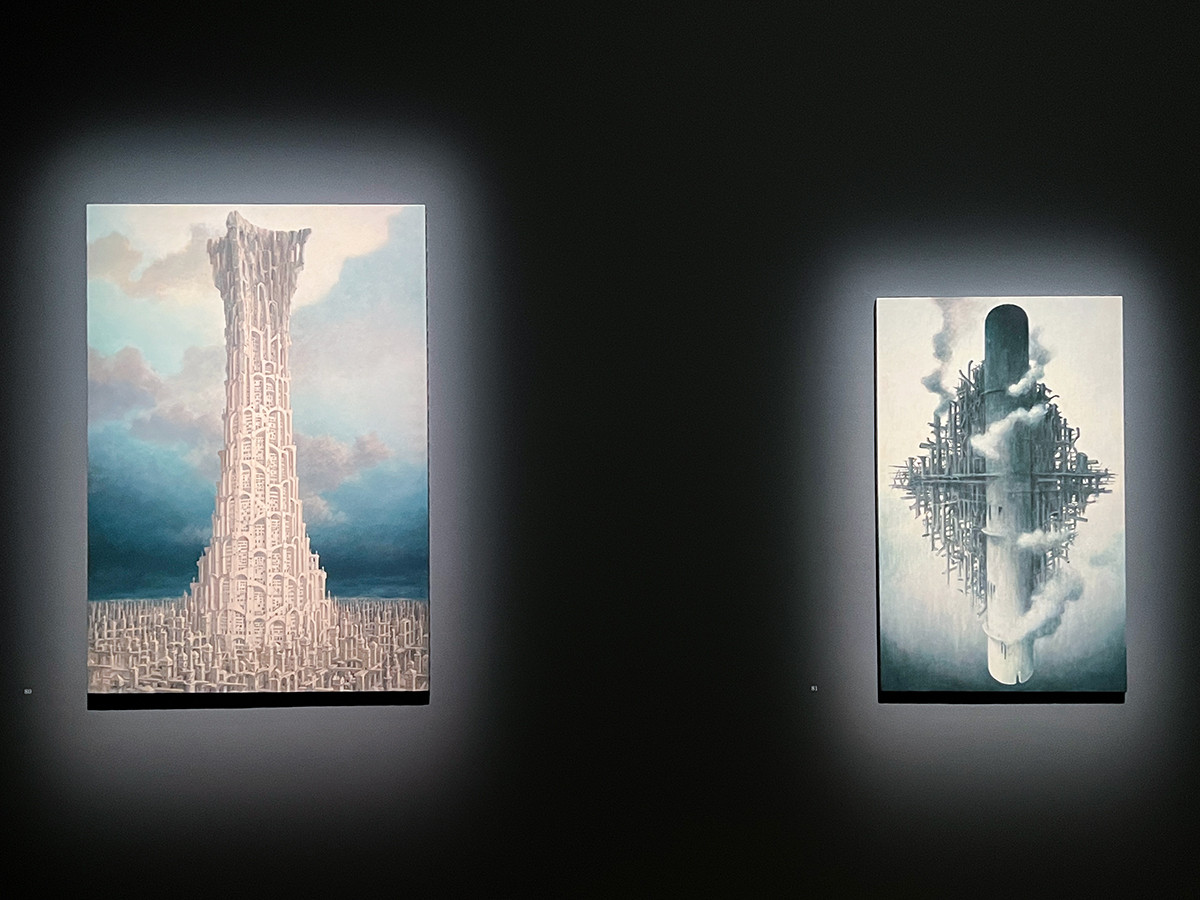 モデルとしている風景はないそうですが、キリコやエッシャー、バベルの塔を彷彿とさせる作品が会場には並んでいます。