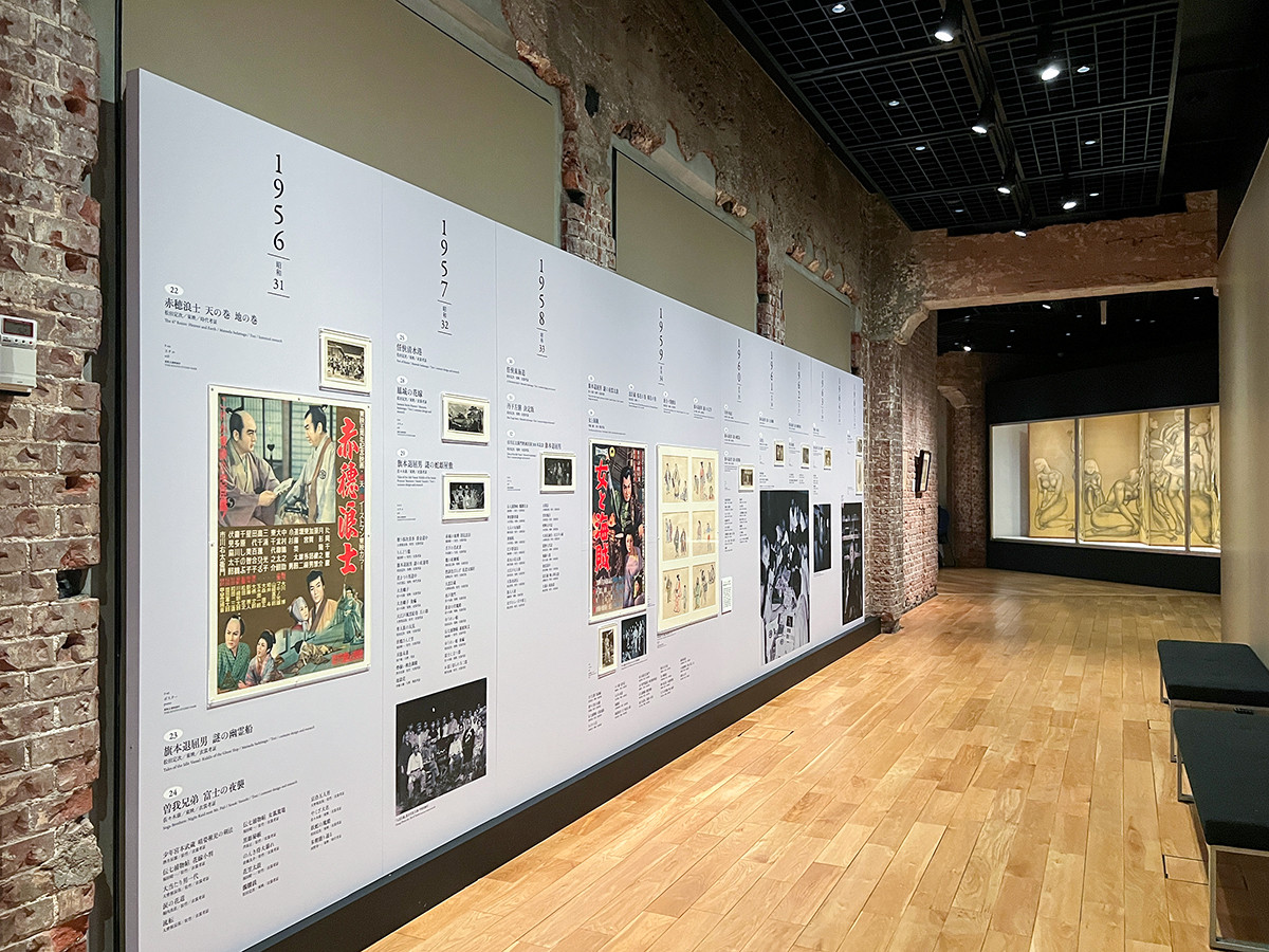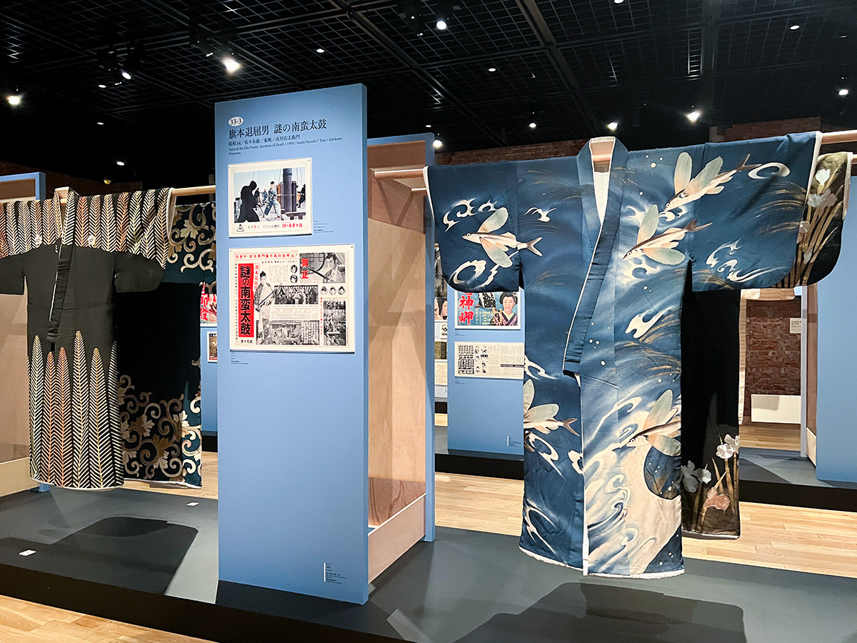 近年の研究により、東宝、松竹、大映合わせて236本もの映画に携わっていたことが明らかになっている甲斐荘。会場には、名優・市川右太衛門と甲斐荘楠音がともに作り上げた「旗本退屈男」シリーズの豪華衣裳や、アカデミー賞衣裳デザイン賞にノミネートされた『雨月物語』(溝口健二監督・1953年)の衣裳が会場を華やかに彩ります。