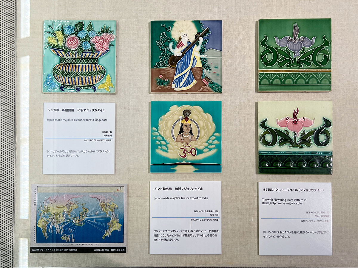 大正中期にはモチーフやデザイン、色調を研究し市場を海外に求めるようになり、後に「和製マジョリカタイル」として今でも人々を虜にしています。