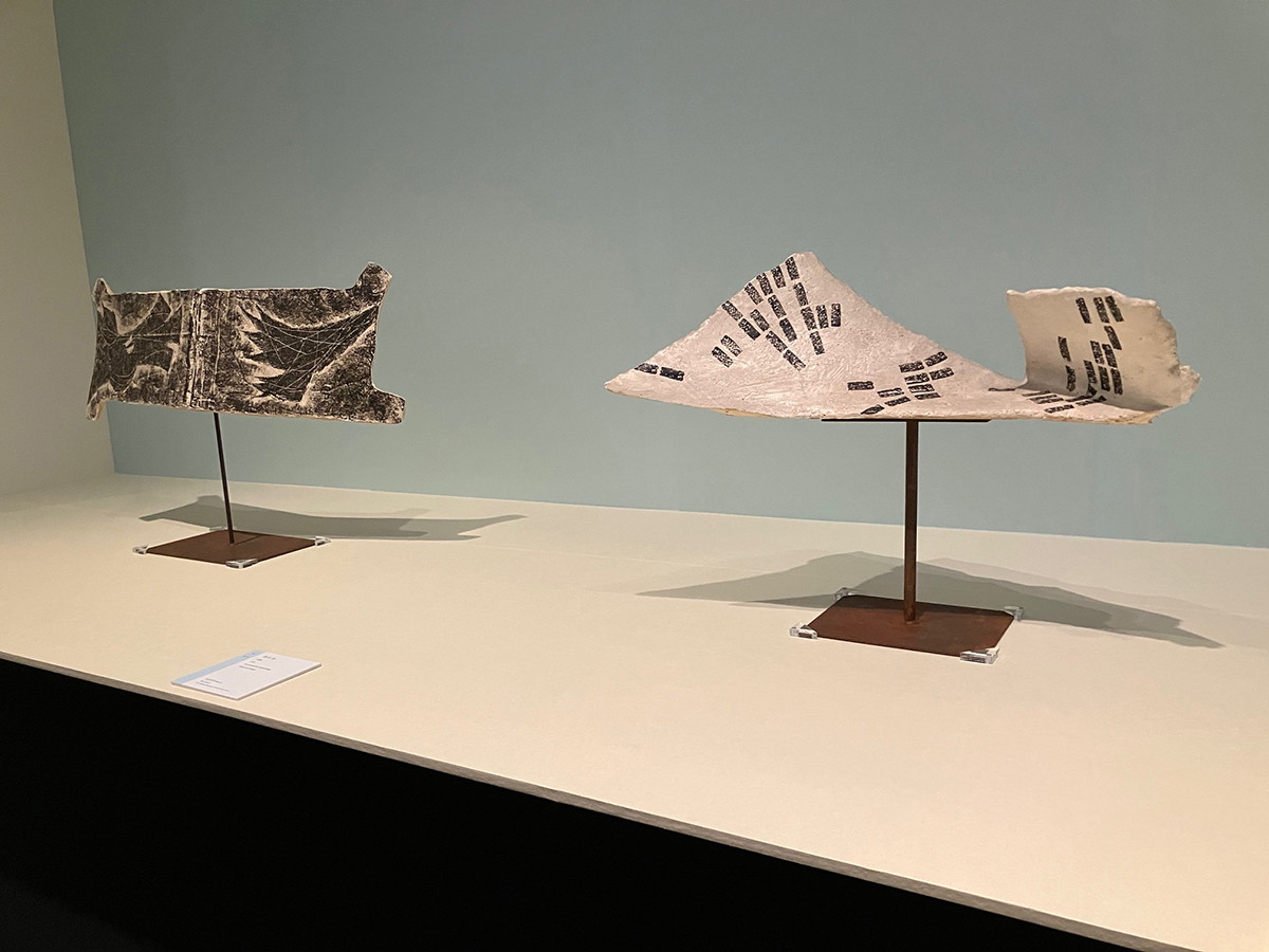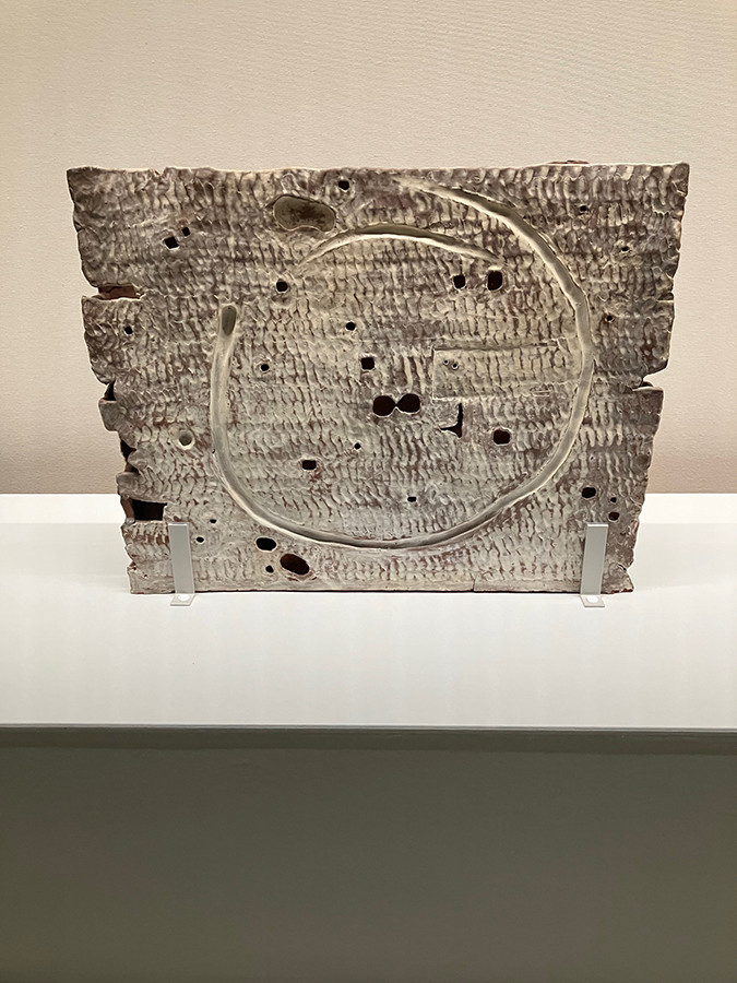 こうした作品を見ていて感じるのは土を火で焼いて作る陶芸技法によって生み出される独特の質感や形、色彩を巧みに使っているということだ。木や金属、石などでなく陶でオブジェを作る意味は、陶磁器が持つ独特な持ち味にその力が潜んでいるようにも思った。