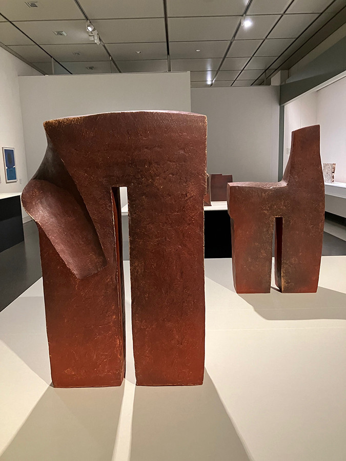 私が今回の展覧会で最も注目した作家のひとり鈴木治。走泥社創設者の一人で、泥象シリーズとも呼ばれる紅で彩色した形態はその存在感と同時に見る者の想像力をかきたてる。中でも馬のシリーズはその抽象化と陶による造形化が見事である。