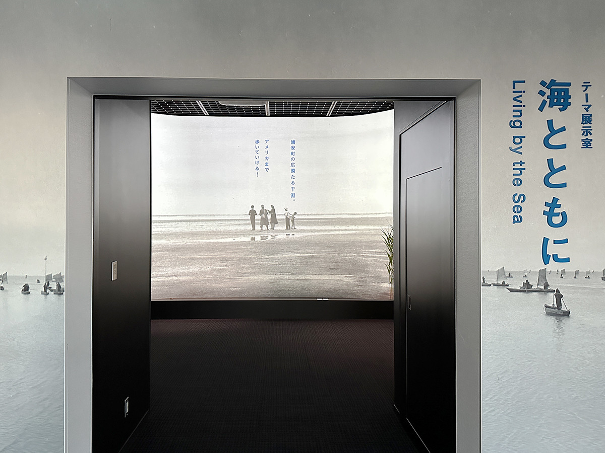 テーマ展示室は4章構成で「浦安の原風景」から始まります。かつて海岸線の堤防は、現在の浦安市役所庁舎の真下にあり、市役所から先は海でした。