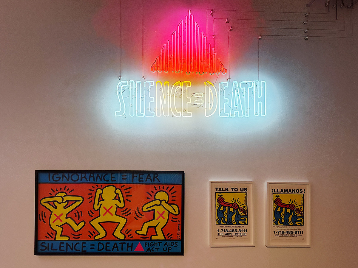 ヘリング自身も、エイズと戦いながら抗議活動に参加。1990年に亡くなるまで、アートを通じてHIV・エイズとともに生きる人々を支援しました。