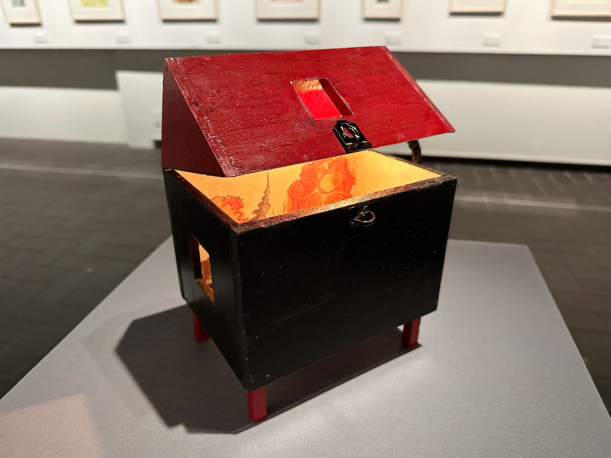 会場は4章構成で、第1章「旅の『はじまり、はじまり!』」から。ここには家をモチーフにした版画などが並びます。