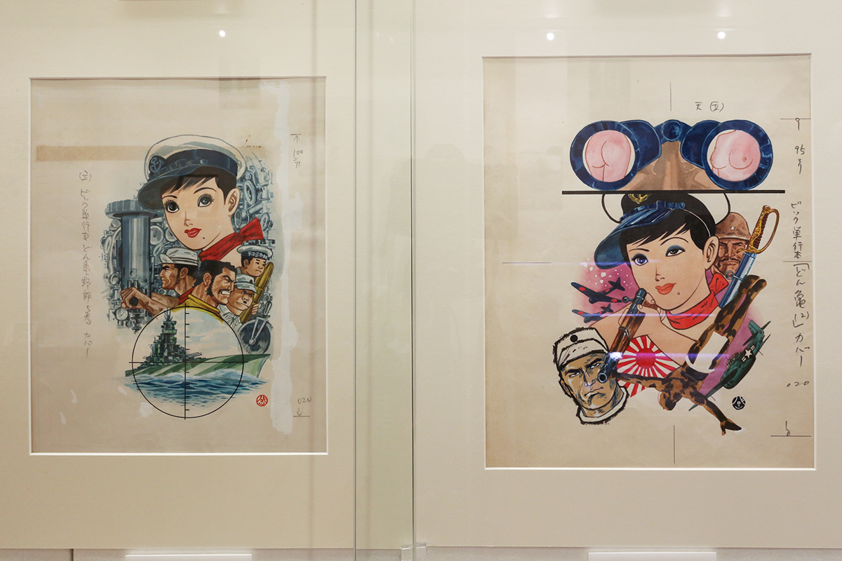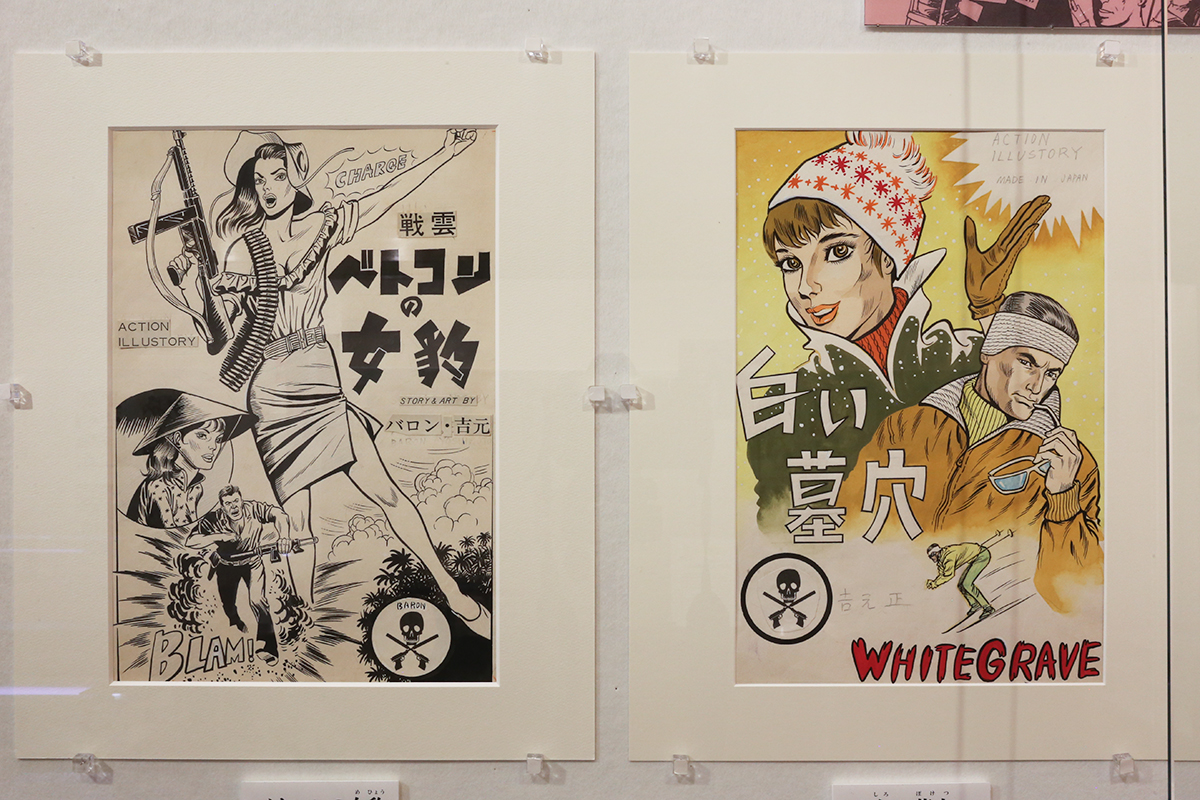 (左から)《ベトコンの女豹》1967年5月27日号「漫画ストーリー」(双葉社)扉絵原画 / 《白い墓穴》1967年5月13日号「漫画ストーリー」(双葉社)扉絵原画