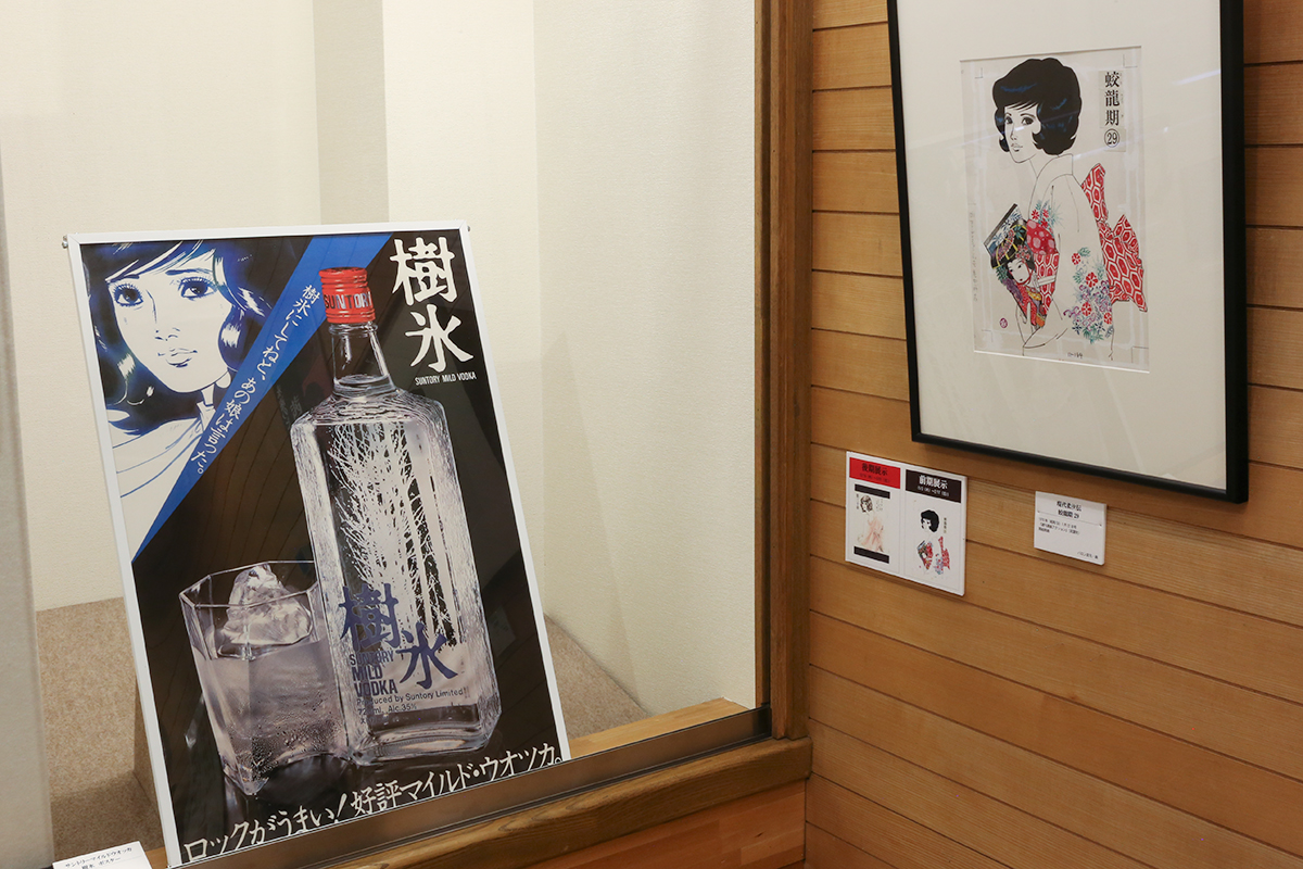 (左から)《サントリーマイルドウォッカ 樹氷 ポスター》1978年 サン・アド蔵 / 《現代柔俠伝 蛟龍期 29》1976年1月22日号「週刊漫画アクション」(双葉社)扉絵原画