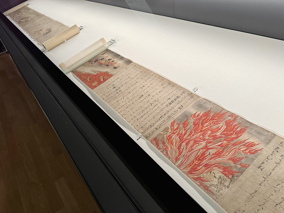 (左奥から)国宝《餓鬼草紙》平安時代・12世紀 京都国立博物館蔵[展示期間:10/11~11/5] / 国宝《地獄草紙》平安時代・12世紀 東京国立博物館蔵[展示期間:10/11~11/5]