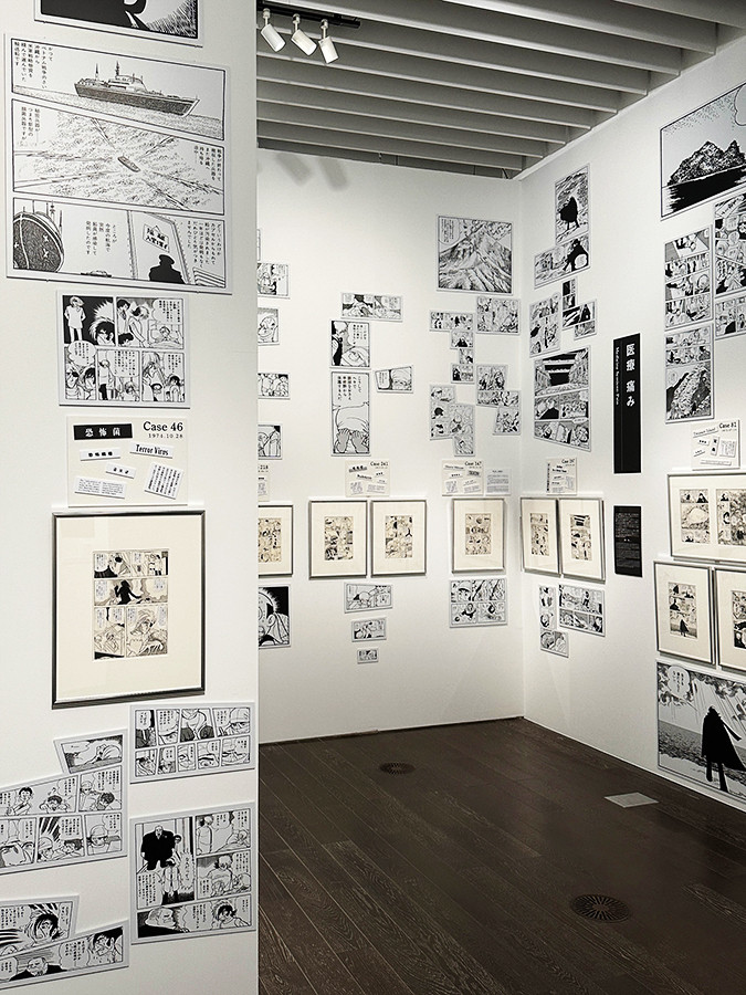 第4室「B・J蘇生」は、現代と当時の視点で『ブラック・ジャック』の魅力を紐解くコーナー。当時の読者が驚き惹きつけられた緻密な体内描写など、こちらもさまざまな原画が並びます。