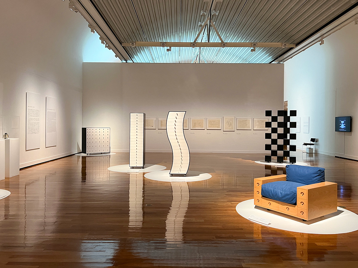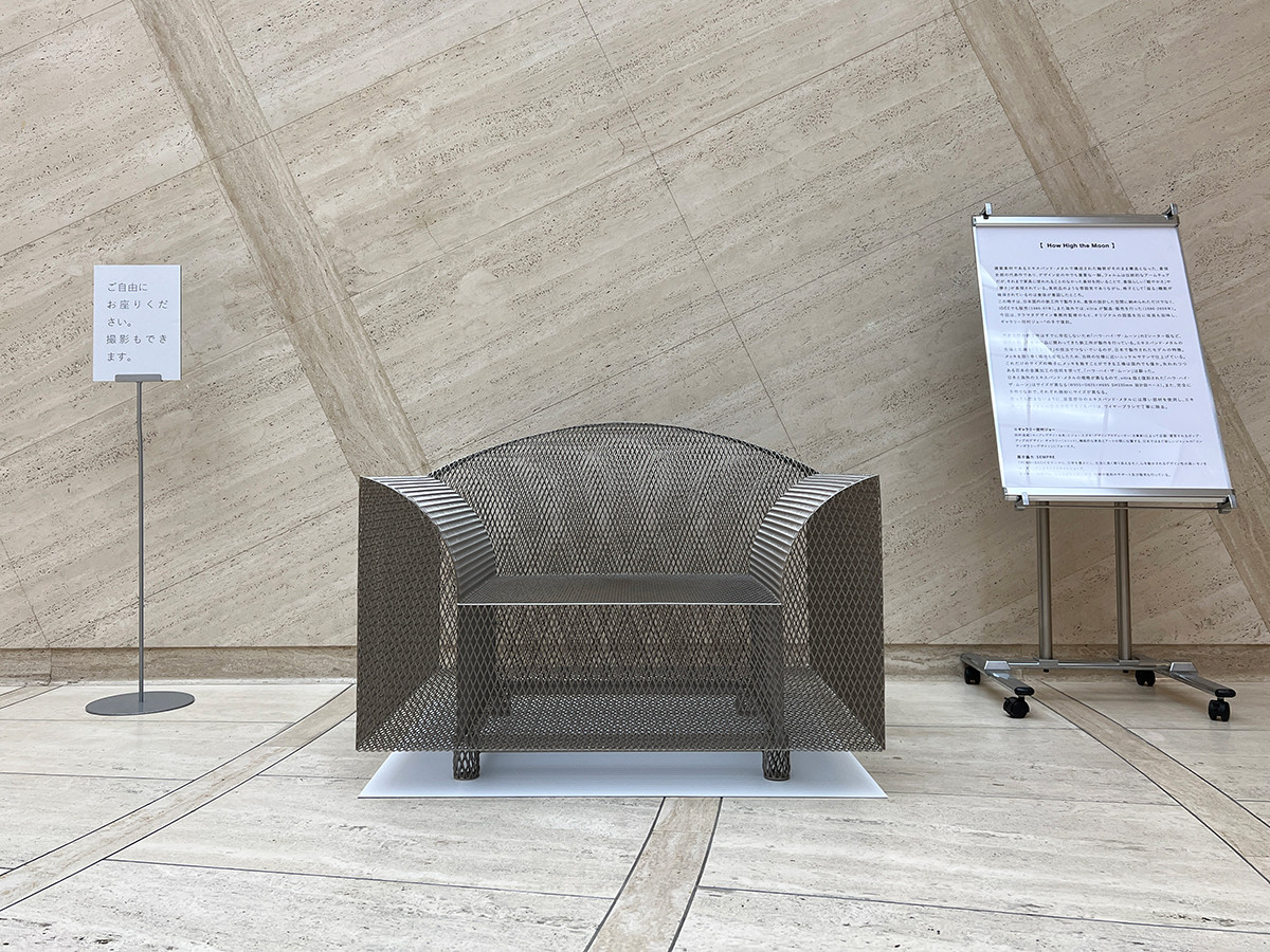 56歳の若さで亡くなった倉俣史朗。会場では、その業績や独創性に存分に浸ることができます。また、美術館の入口には、《ハウ・ハイ・ザ・ムーン》が展示されています。伝統的なアームチェアのフォルムながら、軽やかさを感じさせる椅子は、座ることも可能です。