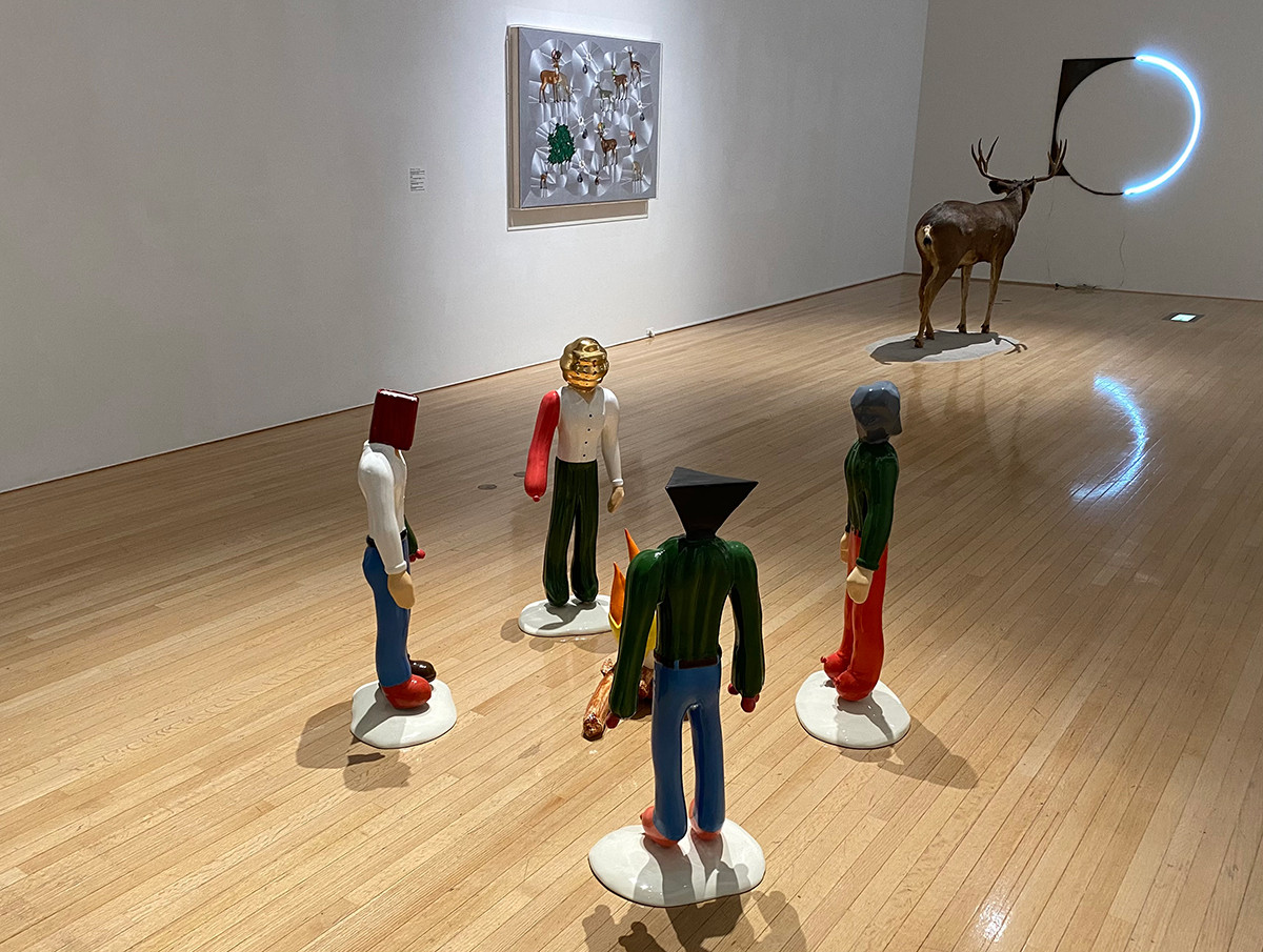 まず、ナイフを持ったウサギを見たとき、暴力性や事件性を背景にした作品かもしれないと思いましたが、羽根を見て、作品の印象が変わりました。これはバドミントンをしているウサギがミスショットをし、羽根を鹿の角に引っ掛けたので、枝を切って羽根を落とそうとしている場面かもしれません。どちらにせよ、作家は見る人に複数のストーリーを想像させる仕掛けをして、ミス・リードを誘っていると思います。