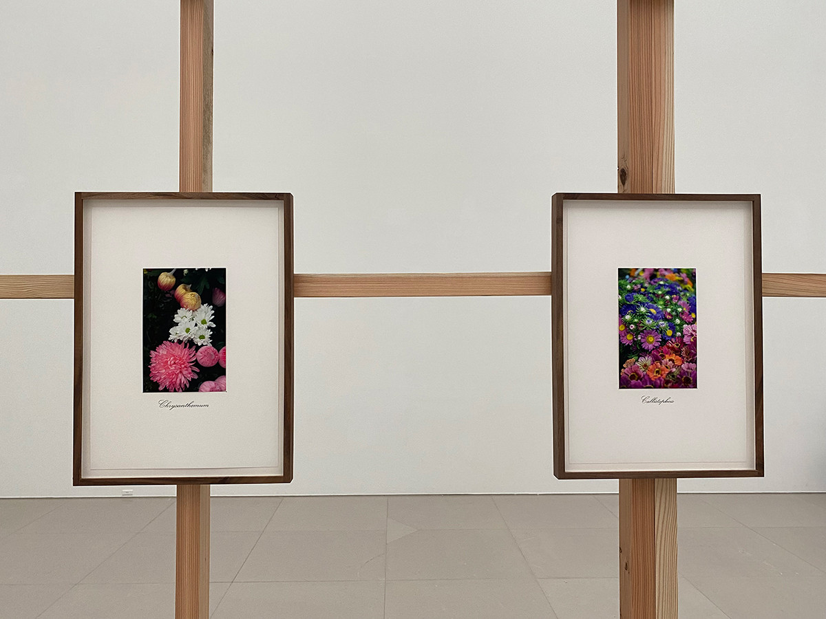 この作品も、これまでの作品のように多層的な構成を持っています。花の写真は、作家の家の庭の花と、摘まれて街の花屋に並べられた花を撮影したもので、言わば日常です。