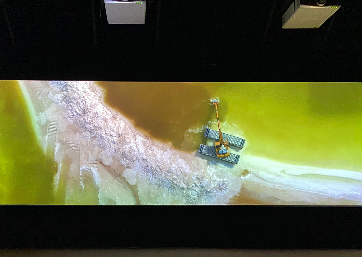 《リチウムの湖とポリフォニーの島Ⅱ》を見終わると、美術の映像作品を見たというより、世界史の講義をみっちりと受けたような気分になります。この作品は、映像の美しさと構成のち密さが秀逸で、本展の出品作品の中で一番印象に残りました。