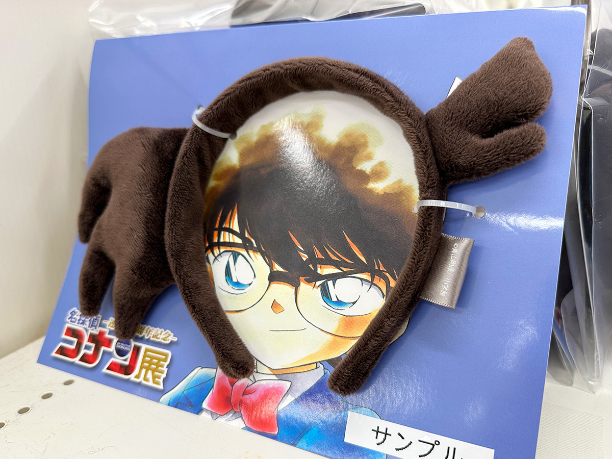 世代を超えて、圧倒的な支持を集めている「名探偵コナン」。会場最後には展覧会限定のオリジナルグッズも多数登場しています。一押しは、つけるだけで江戸川コナンと毛利蘭になれるカチューシャ(各2,200)円です。