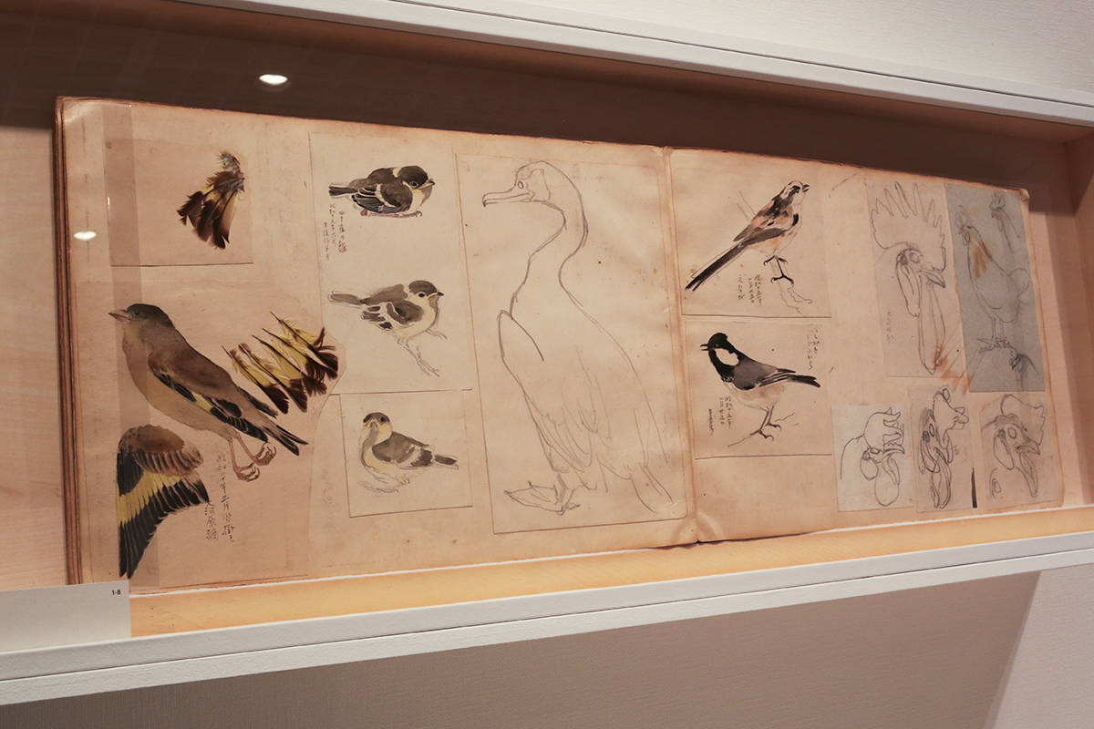 (左下から時計回りで)《植物写生帖 秋之部二》 / 《植物写生帖 冬之部》 / 《無花果図》1890年代 / 《鵜飼船図》1897