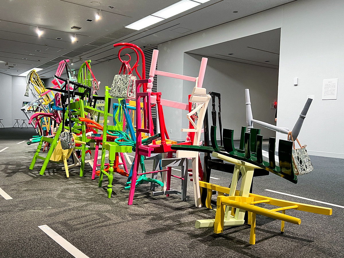 会場は5つの章で構成。椅子に関する国内外の28組の作家により、平面・立体・映像作品、83点を紹介しています。