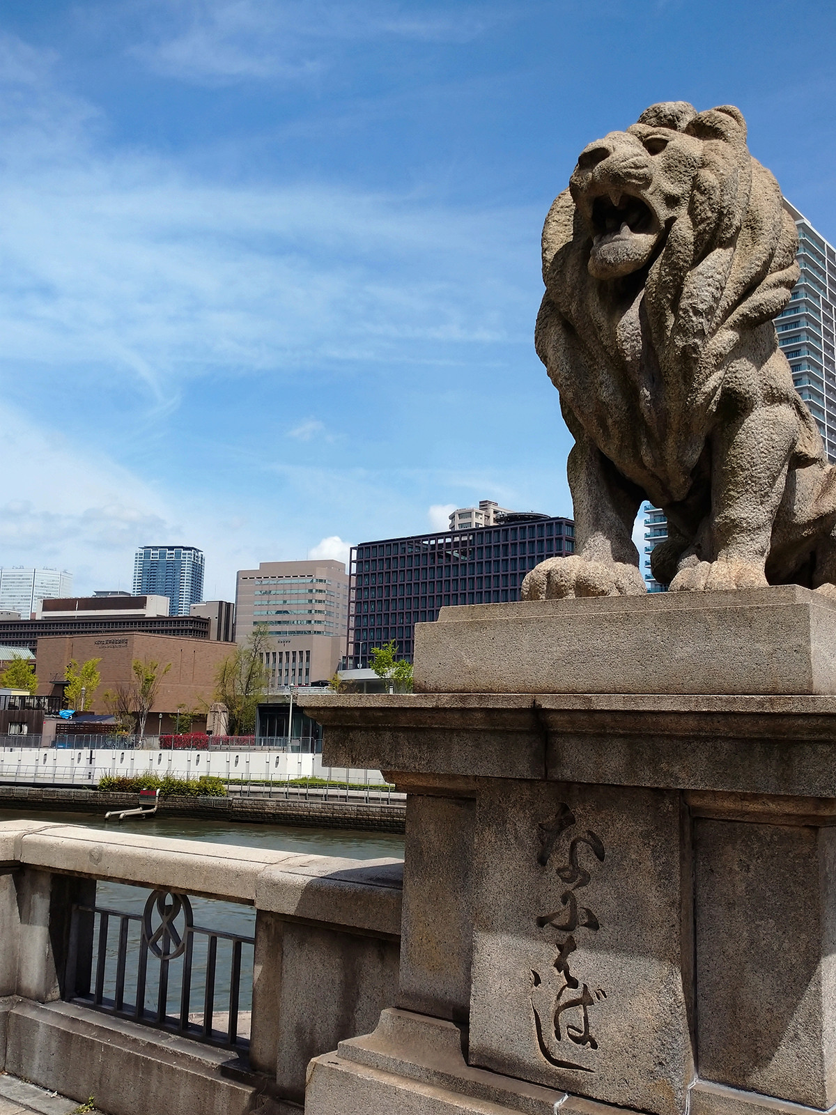 土佐堀川にかかる難波橋からの風景 川向うの左端、茶色い建物が東洋陶磁美術館