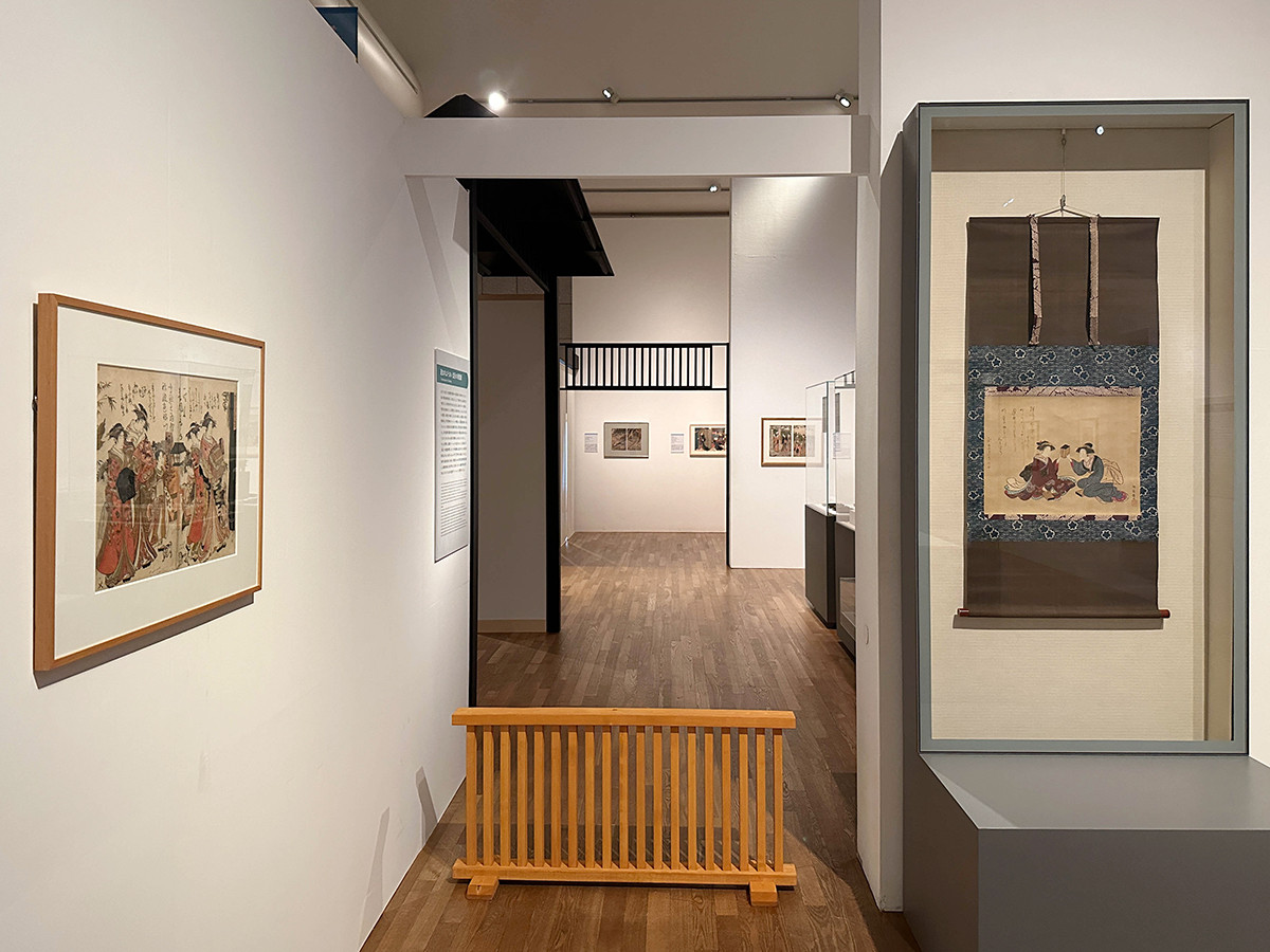 上階の展示室に進むと、通路を挟んで展示室が並ぶ構成。仲之町(吉原の中央通り)の両側に引手茶屋が軒を連ねている吉原をイメージした、ユニークな構成です。
